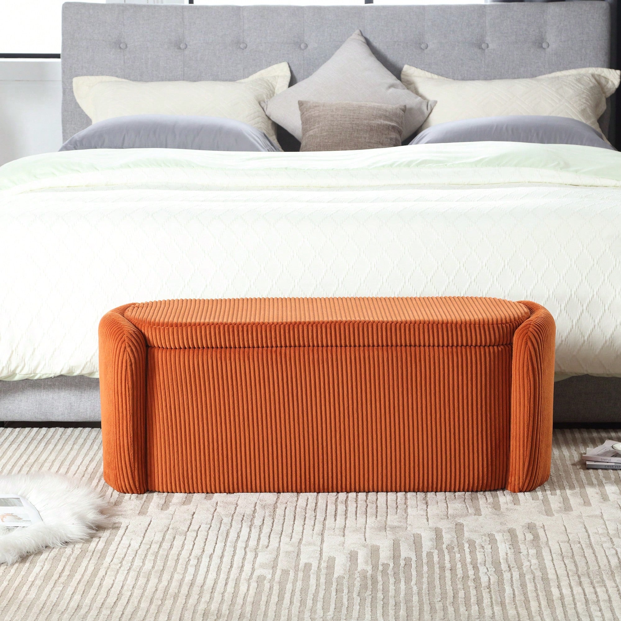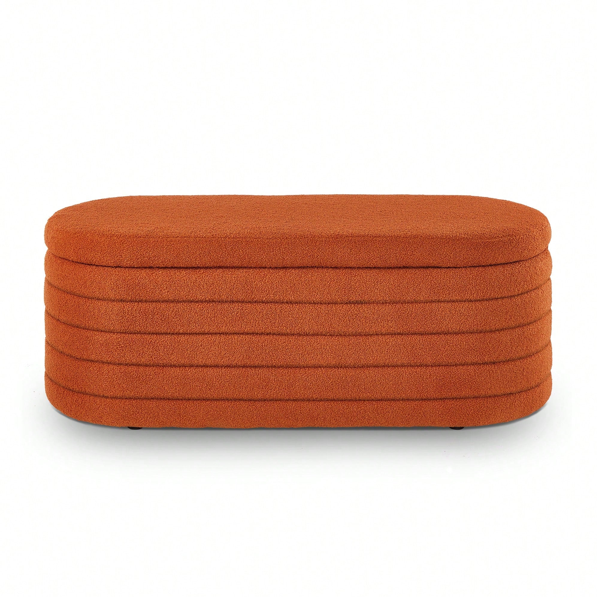 Vibrant Orange Boucle Teddy Fabric Oval Storage Ottoman Bench for Living Room Bedroom Entryway with Safety Hinge