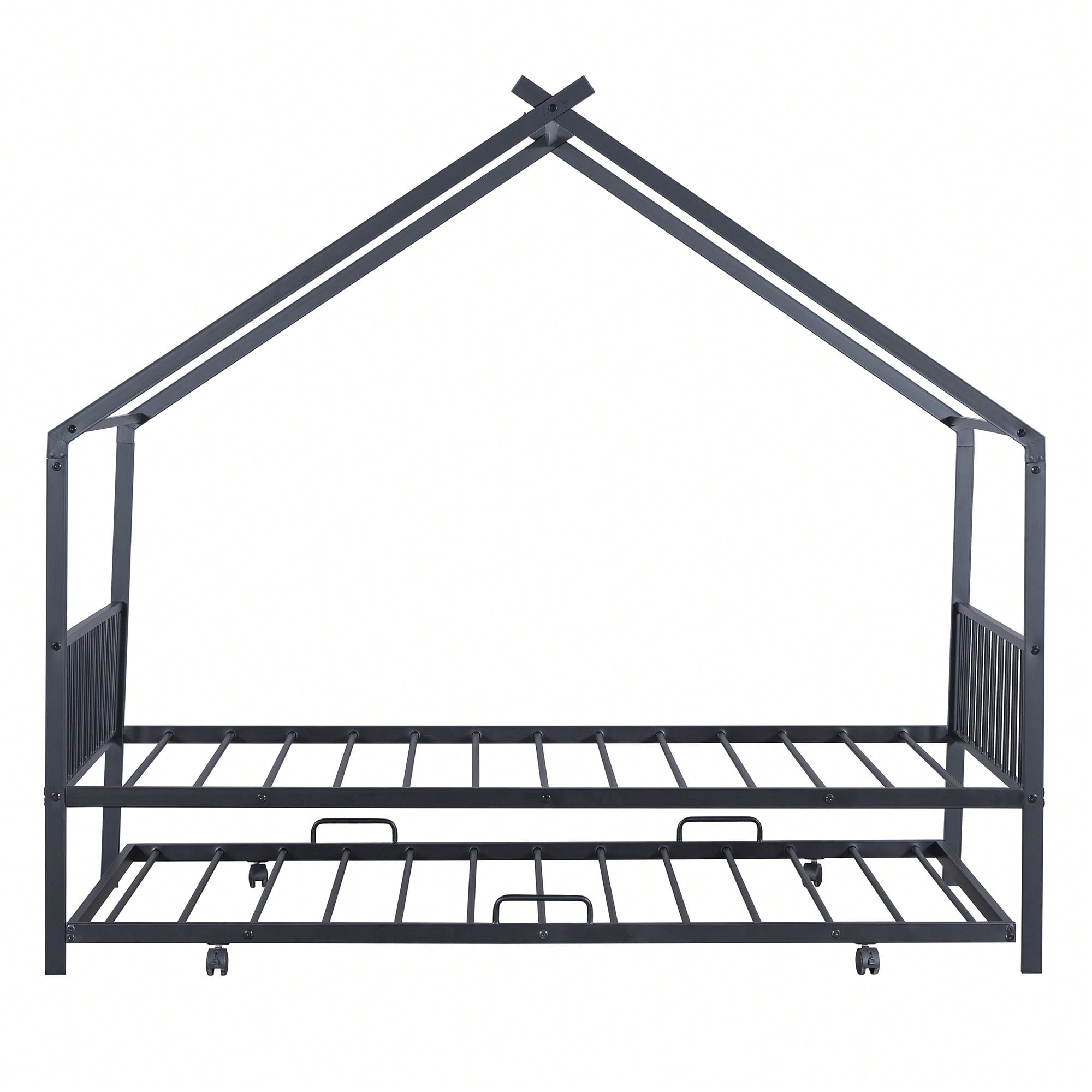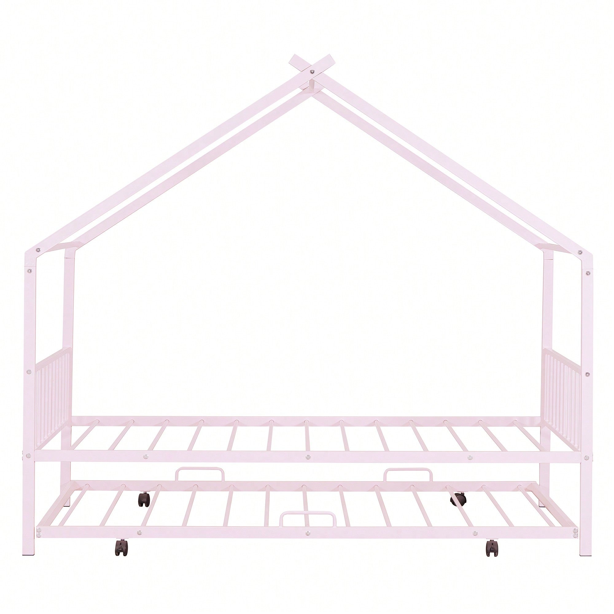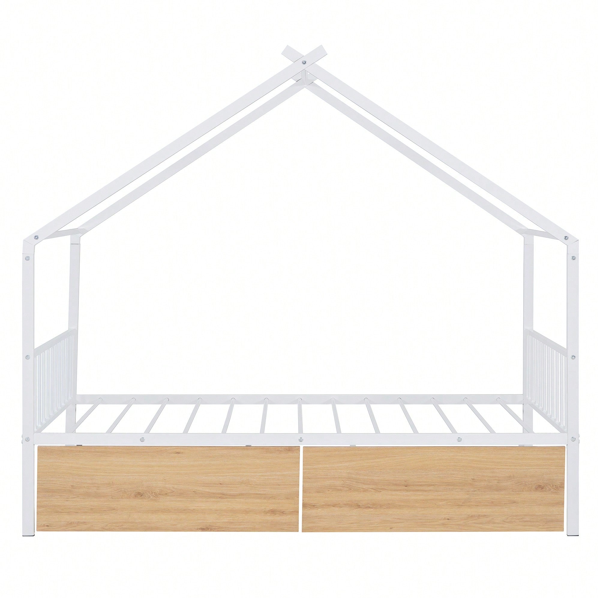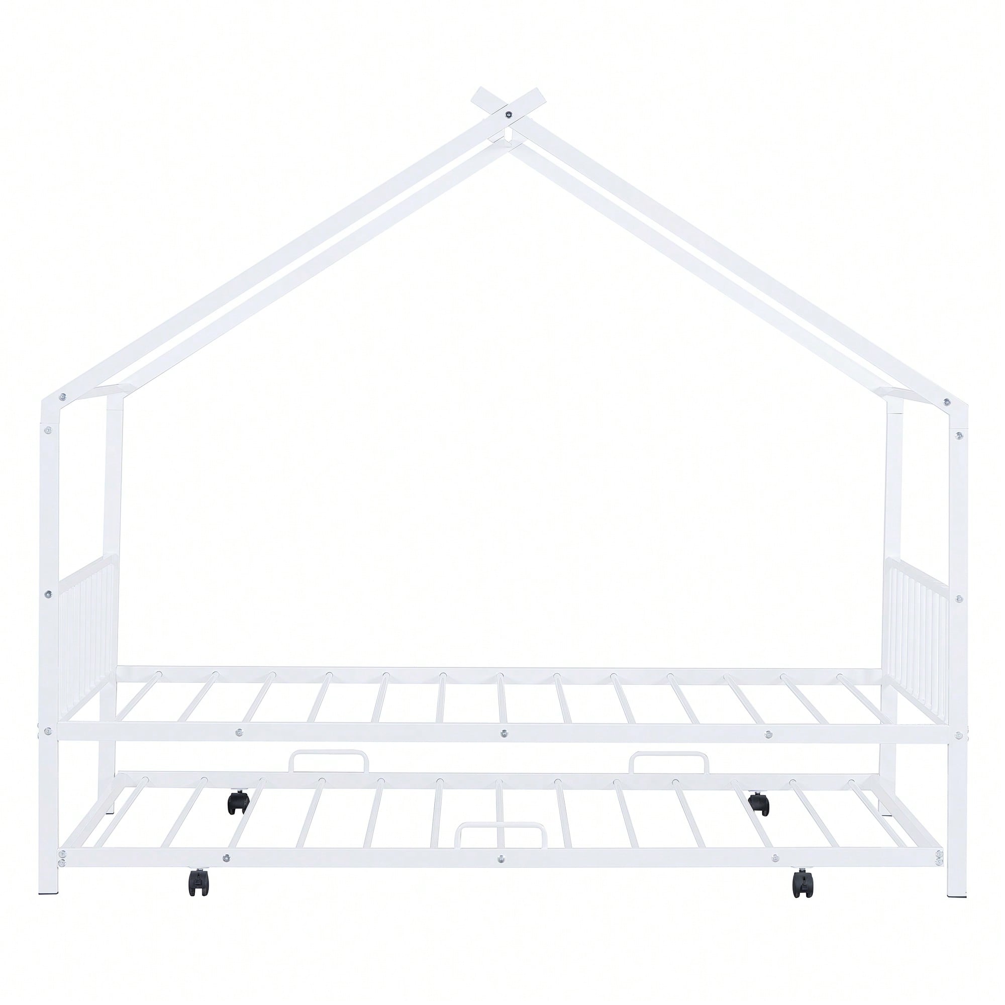 Stylish Twin Size Metal House Bed With Trundle - Space-Saving Design In White