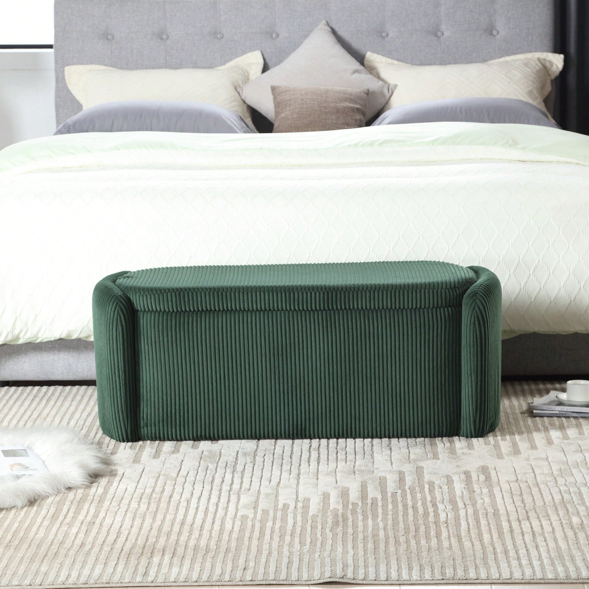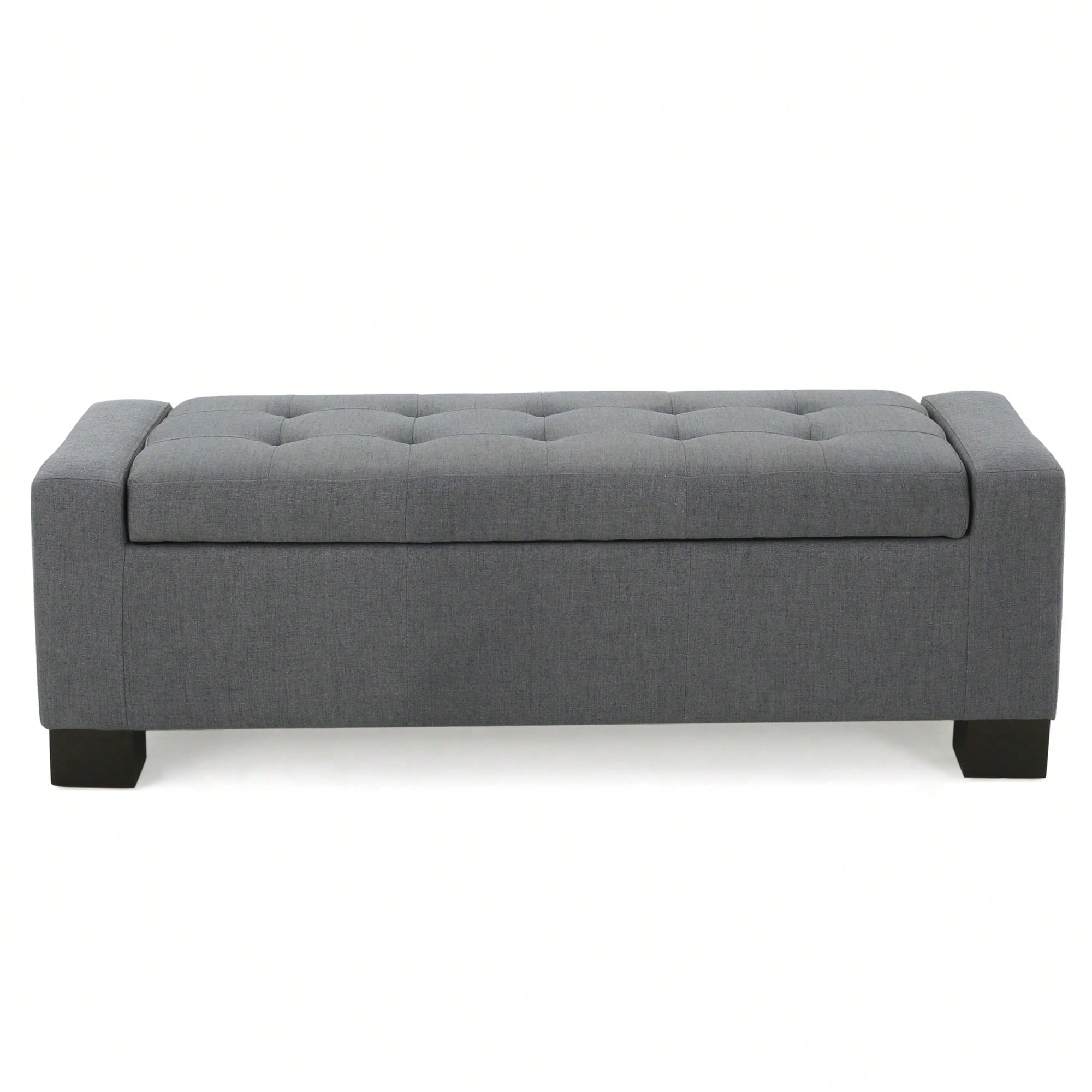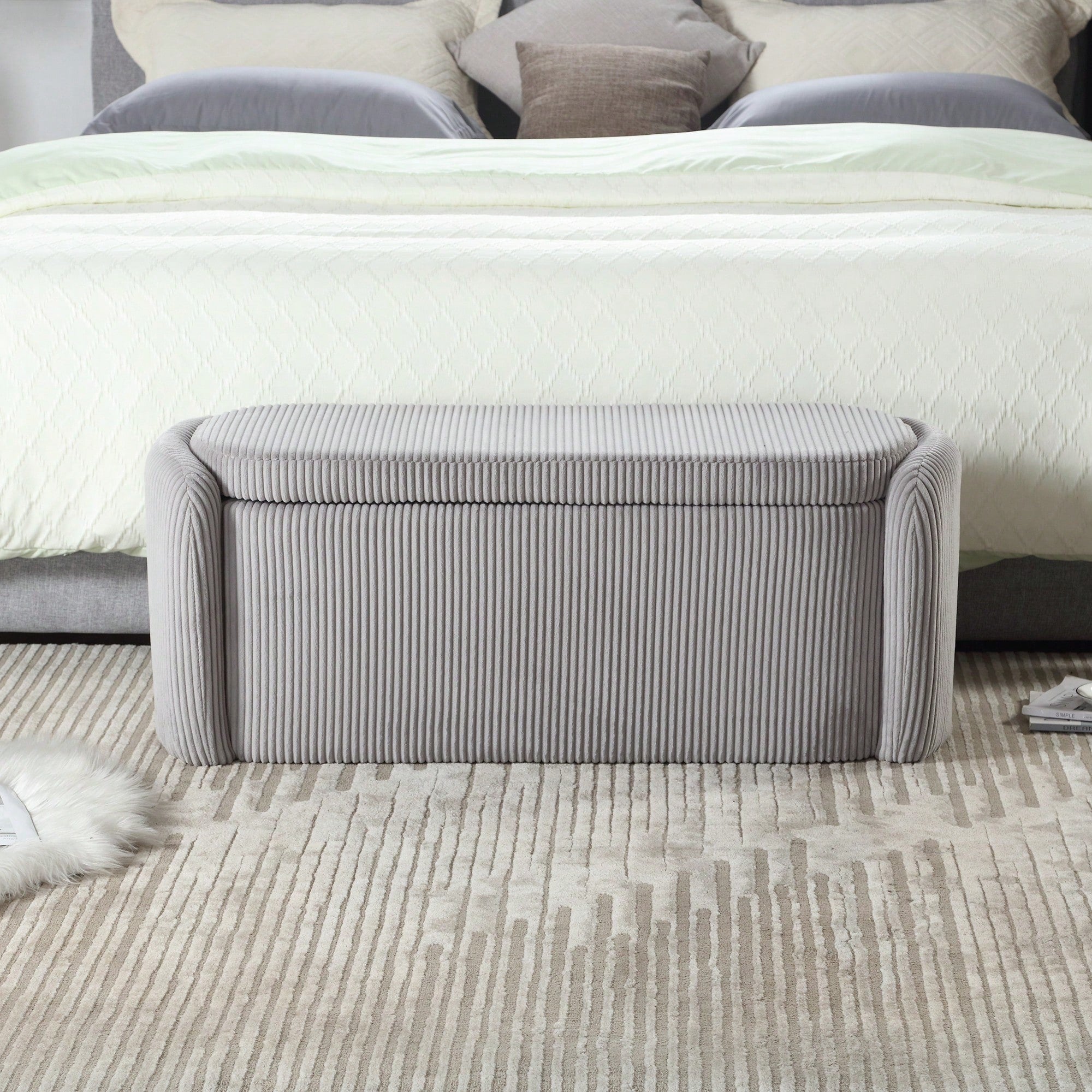 Upholstered Fabric Storage Ottoman With Safety Hinge For Bedroom And Living Room Stylish Entryway Bench In Beige
