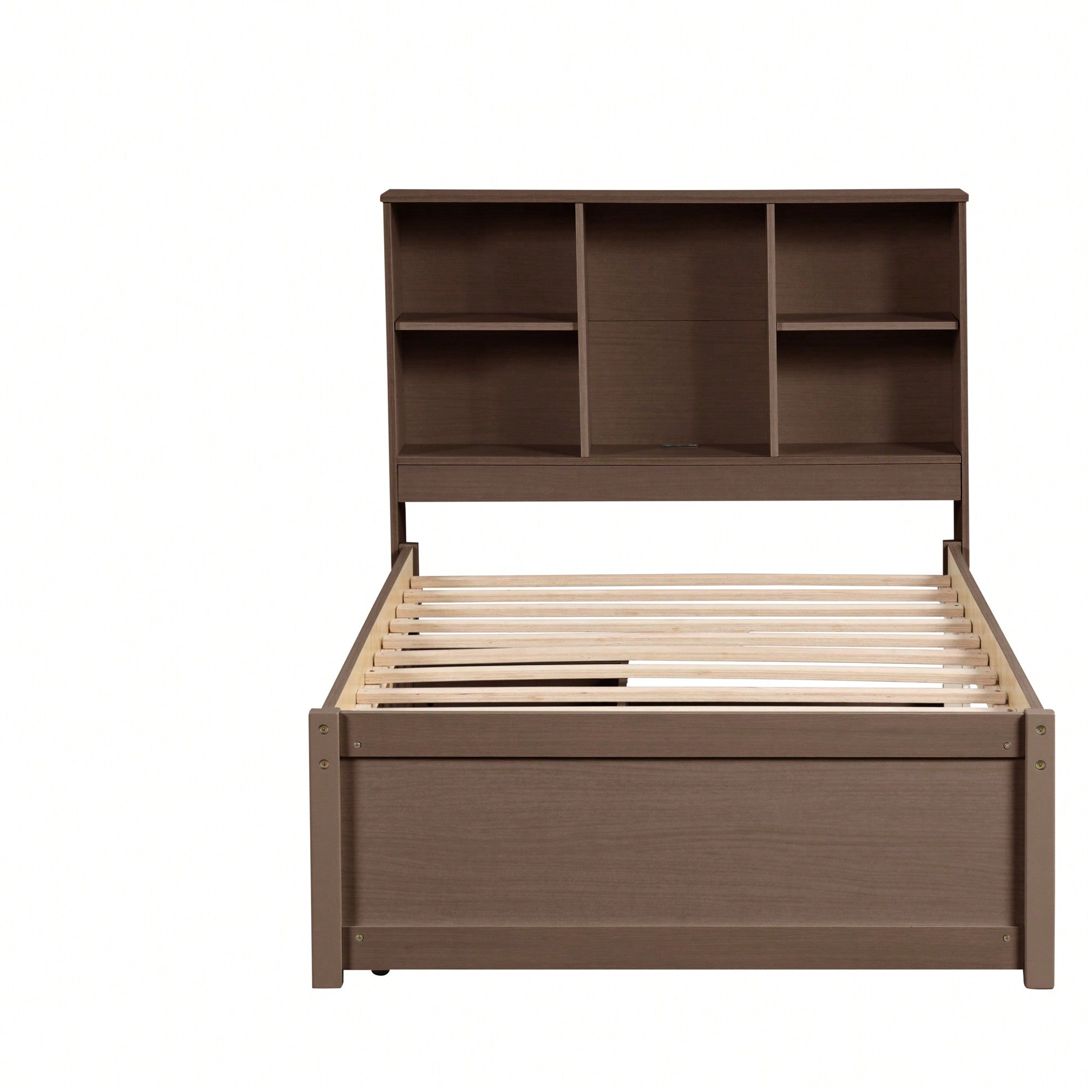 Walnut Twin Size Platform Bed Frame With Trundle For Space-Saving Sleep Solutions