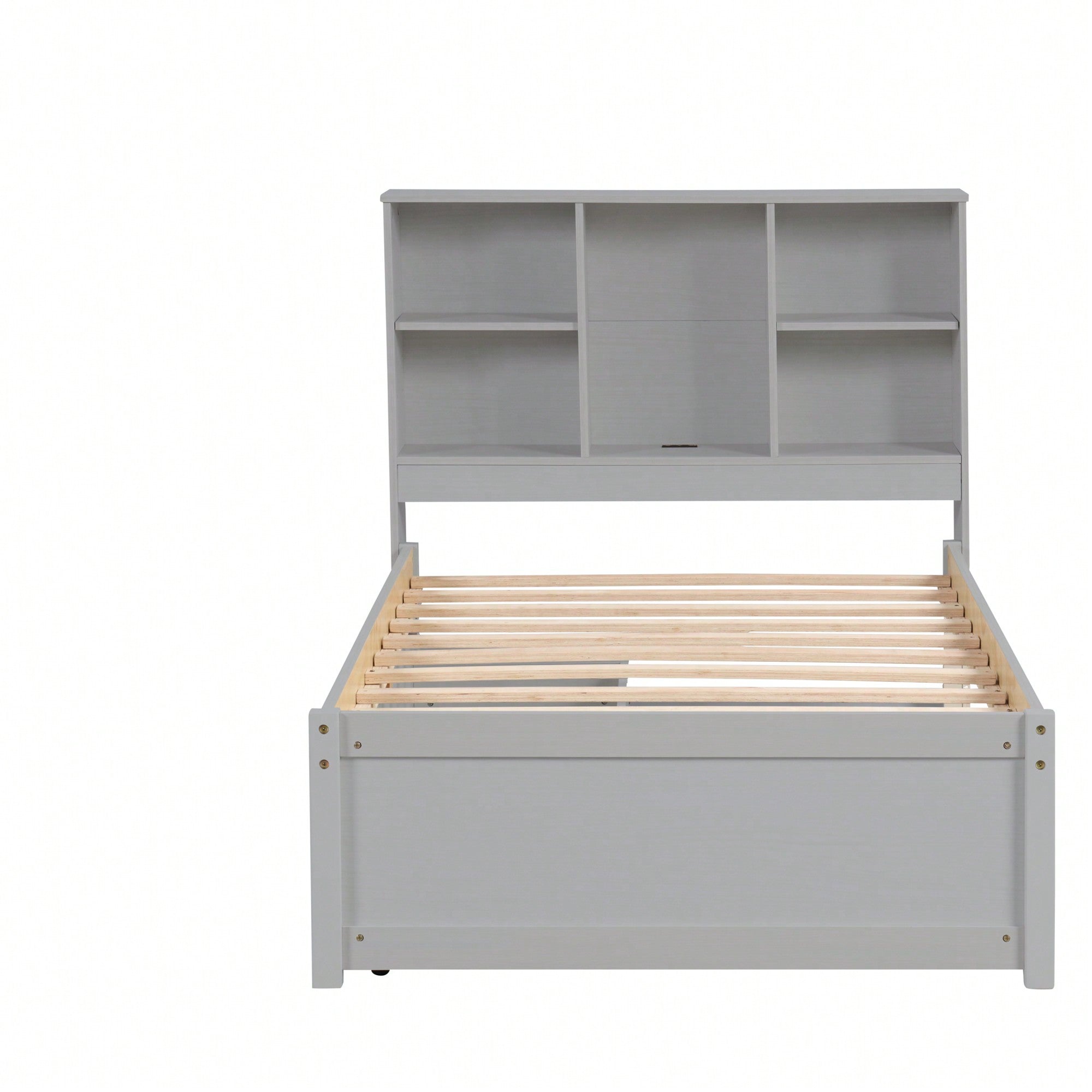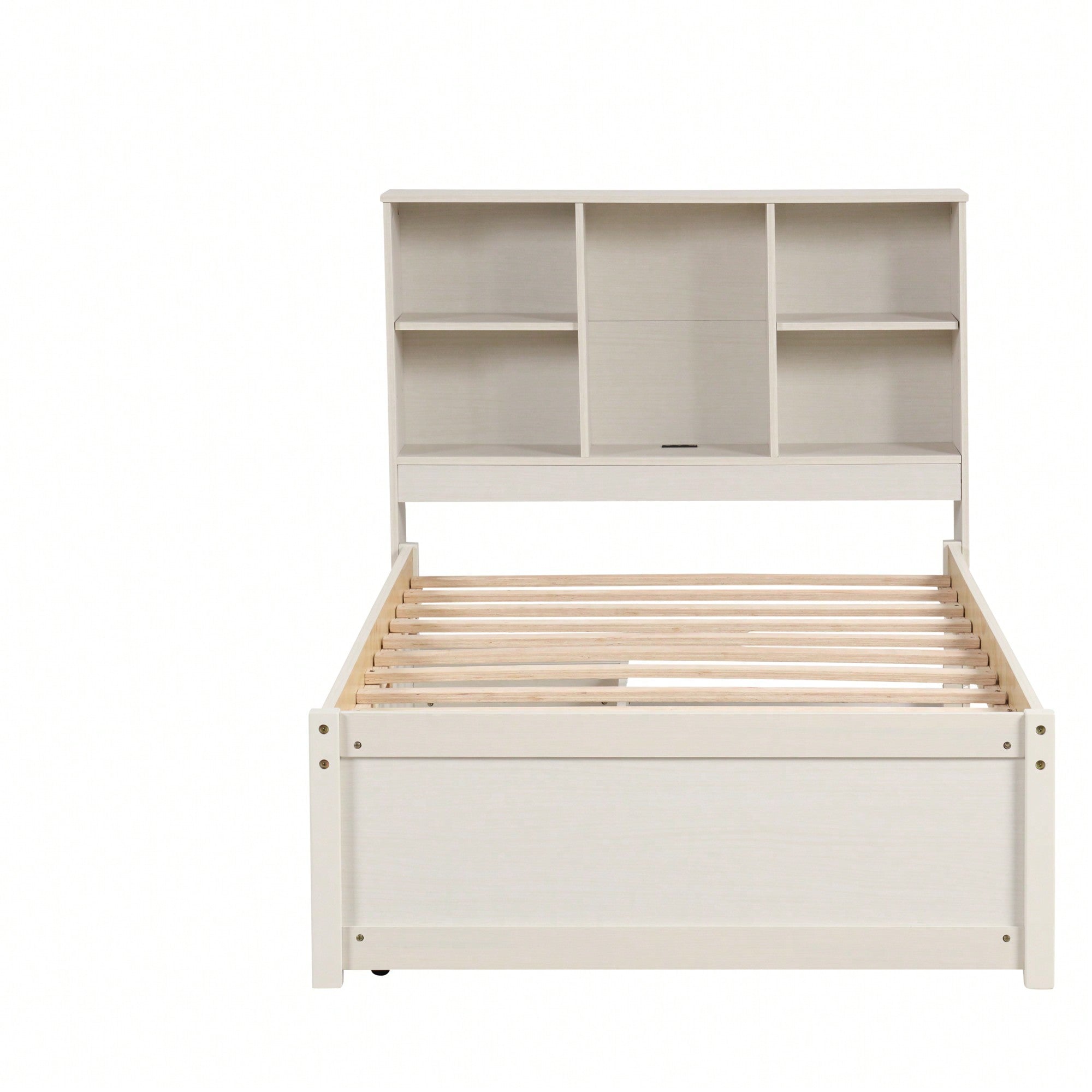 Contemporary Twin Bed Frame With USB Port And Storage Drawers In White Washed Finish