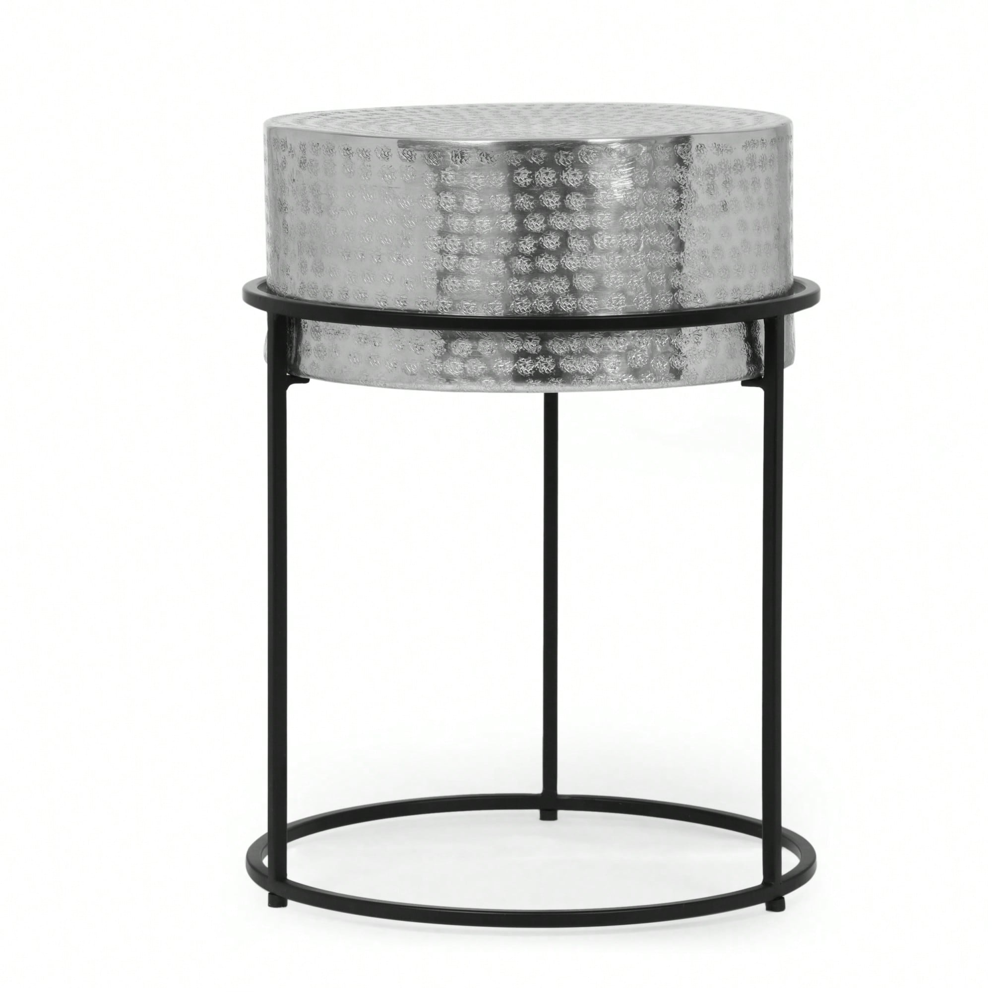 Regular price $84.99 USDSale price $84.99 USD Regular priceUnit price per$211.99 USDSale Sold out**Key Features:**- Modern design with clean lines and a sleek round structure- Handcrafted with artisan expertise, ensuring a unique product- Hammered aluminum tabletop offers a lightweight...