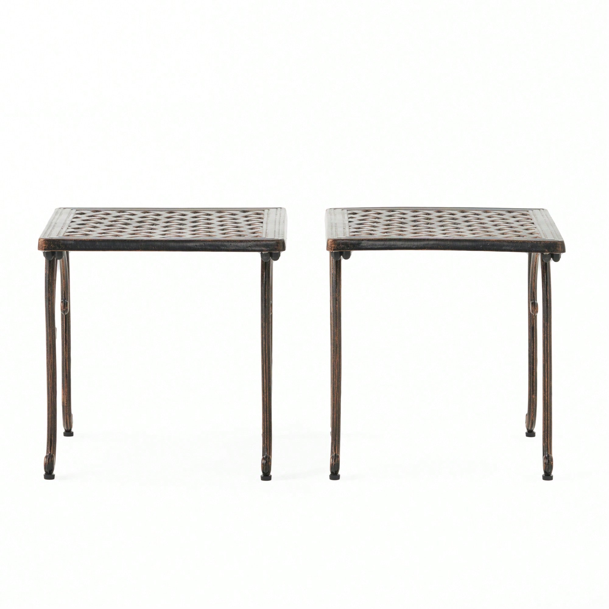 Regular price $228.99 USDSale price $228.99 USD Regular priceUnit price per$347.99 USDSale Sold out1. Features:- Set of 2 outdoor side tables - Traditional design with Old World appeal - Crafted from sturdy cast aluminum - Weathered copper finish for...