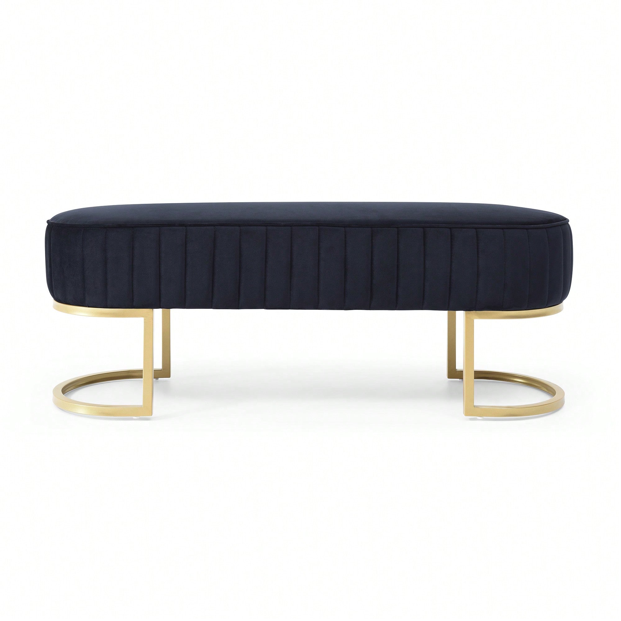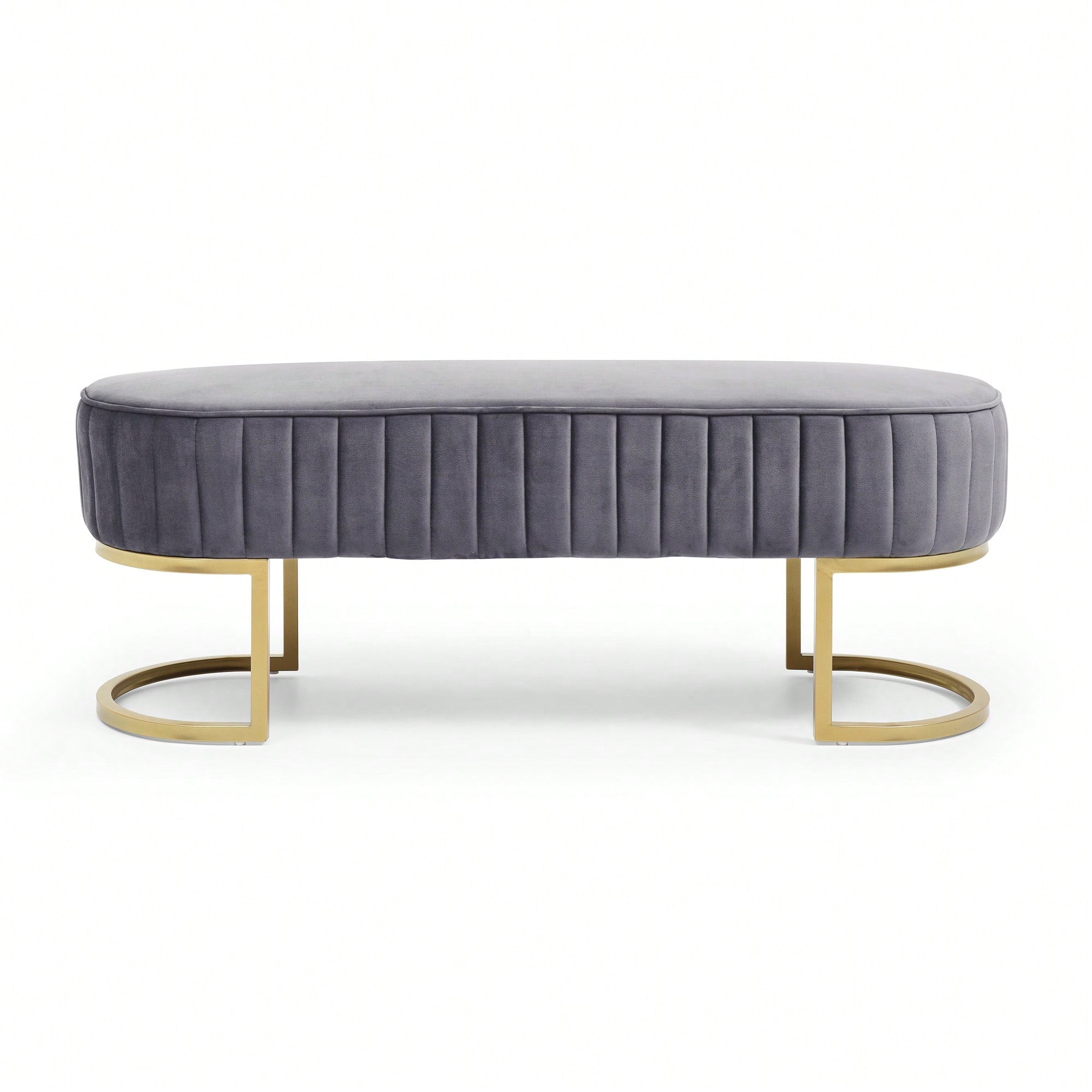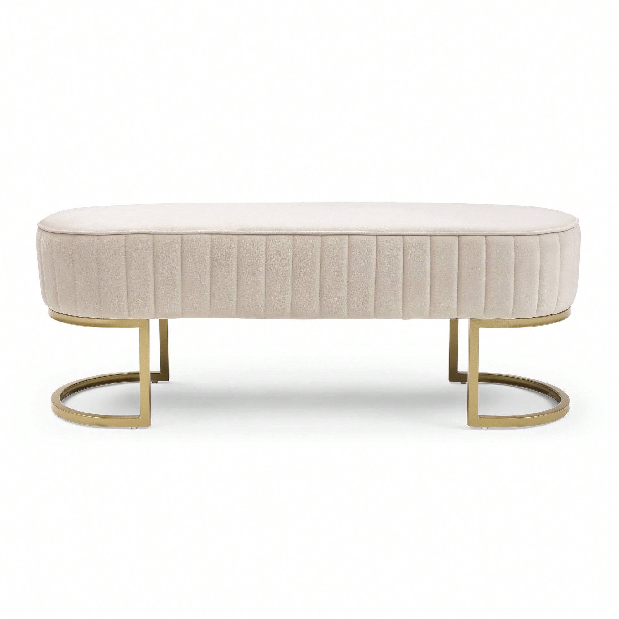 Chic Velvet Oval Upholstered Bench With Gold Metal Legs – 48" Modern Storage Ottoman For Bedroom, Living Room, Or Entryway - Beige