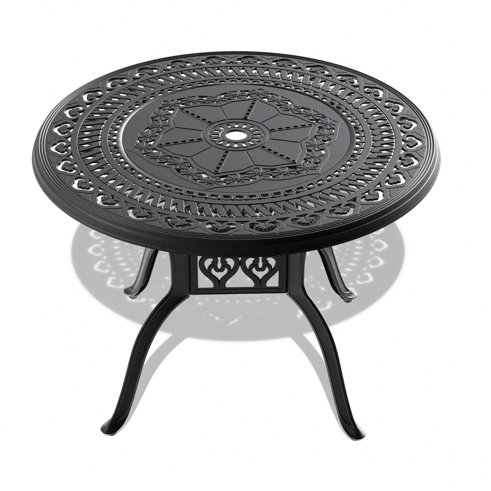 39.37-Inch Round Cast Aluminum Patio Dining Table With Umbrella Hole And Stylish Black Frame