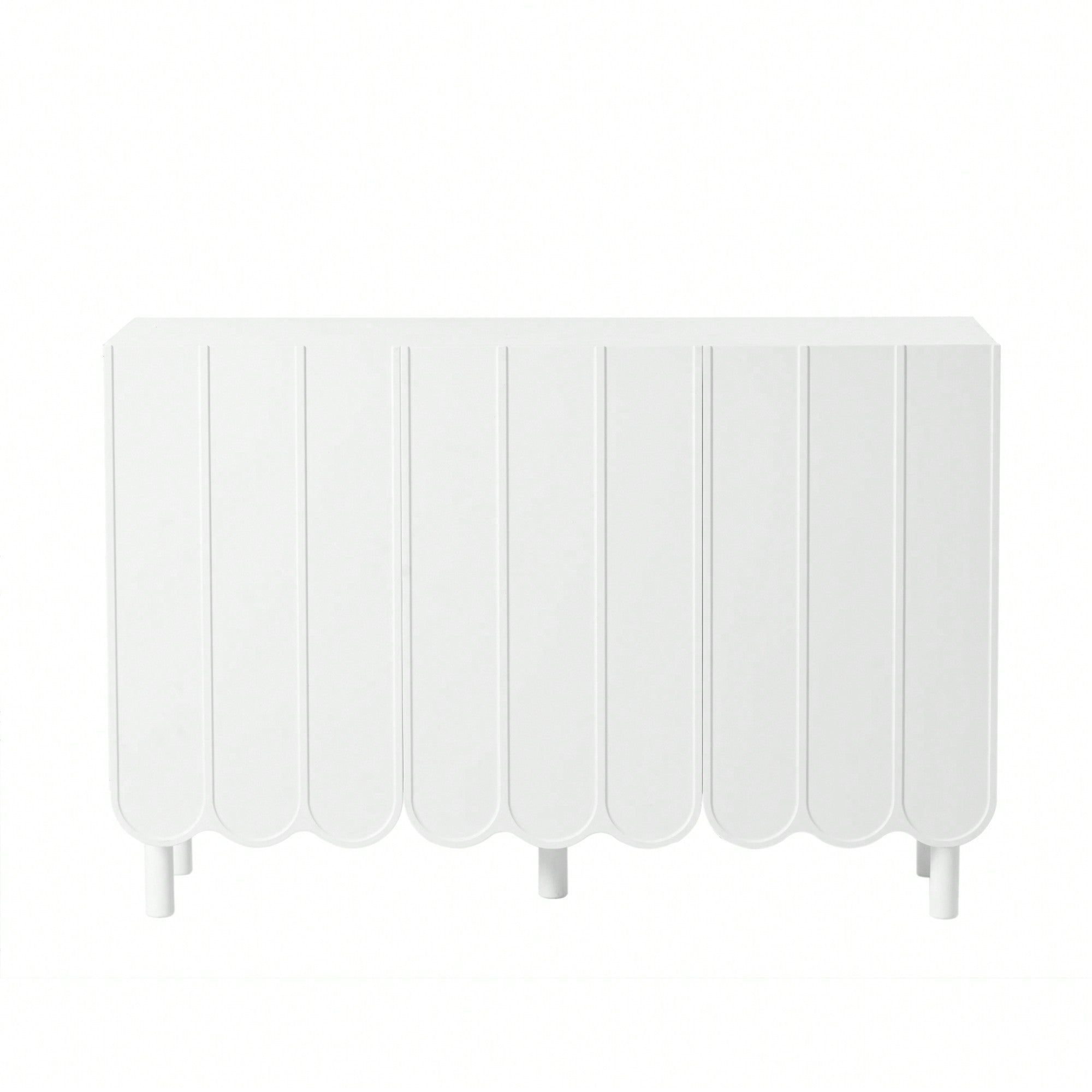 Minimalist White Shoe Cabinet with 5 Wooden Legs Adjustable Shelves and Wave Doors for Stylish Living Room Storage