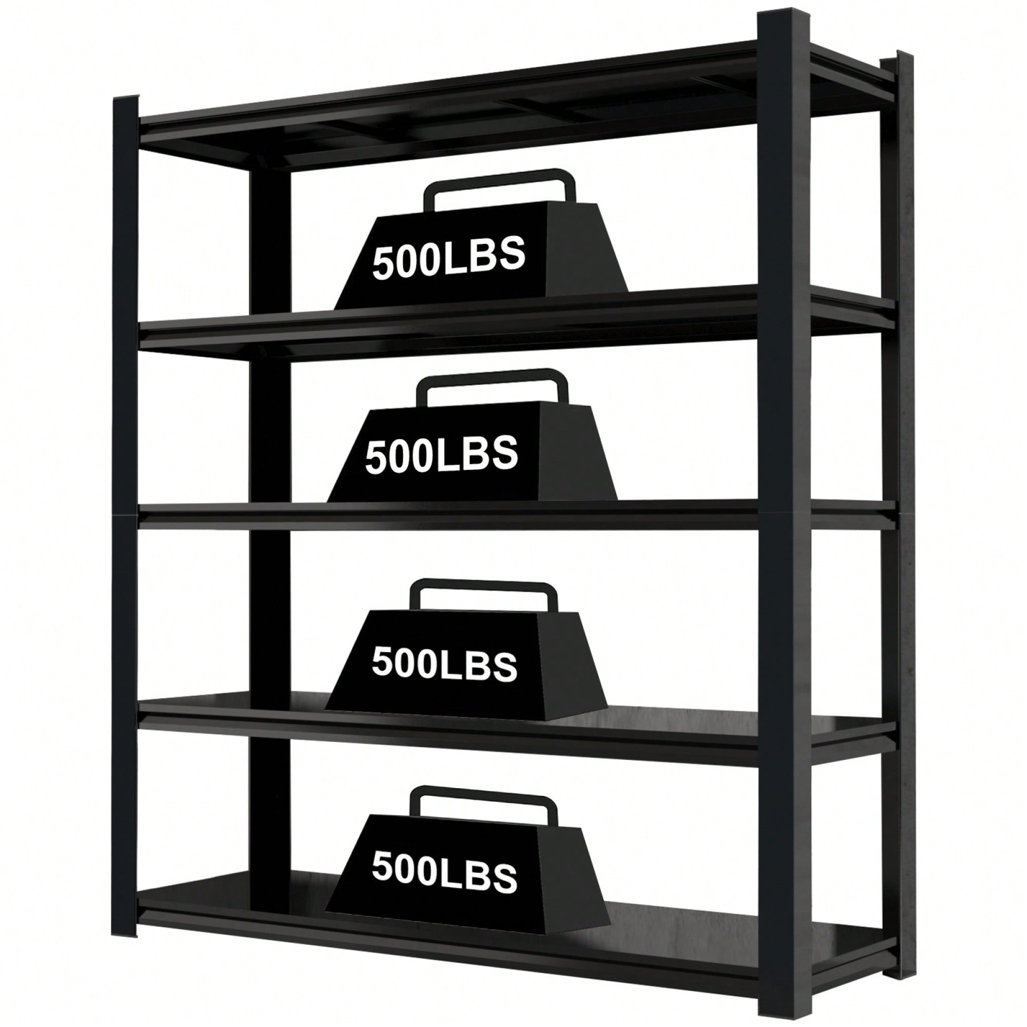 Heavy-Duty Black Metal Shelving Unit with 5 Removable Dividers for Garage Kitchen and Office Storage 83.86 Wide 47.27 Deep 23.62 High