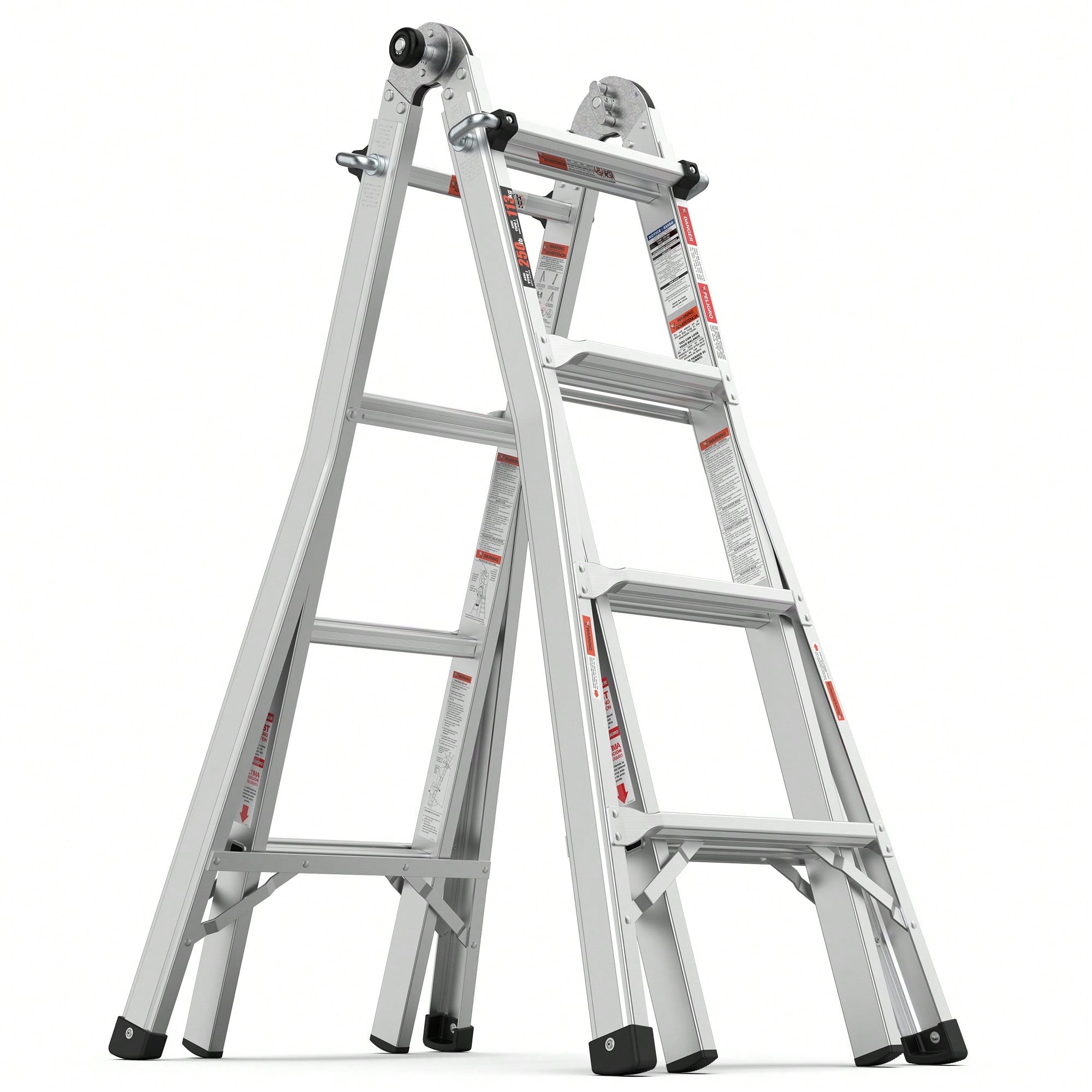 Versatile 17ft Multi-Position Foldable Aluminum Ladder - A-Frame & Straight Design, Supports 250lbs, Ideal For Home And Work Use