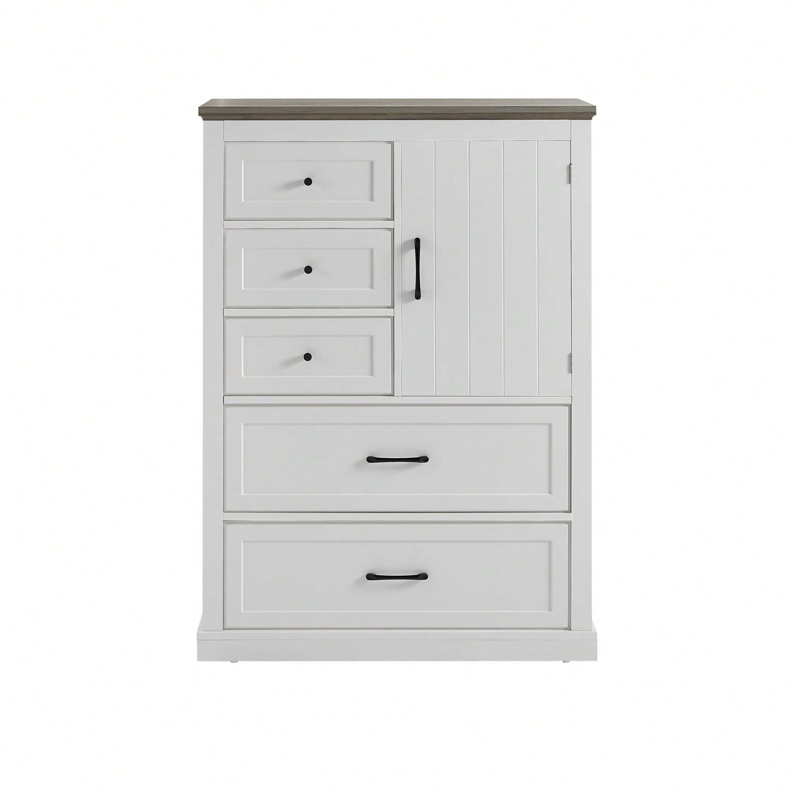 Farmhouse 5 Drawer Dresser Tall Chest Of Drawers Organizer Storage Rustic Wood Bedroom Furniture For Closet Living Room Hallway White