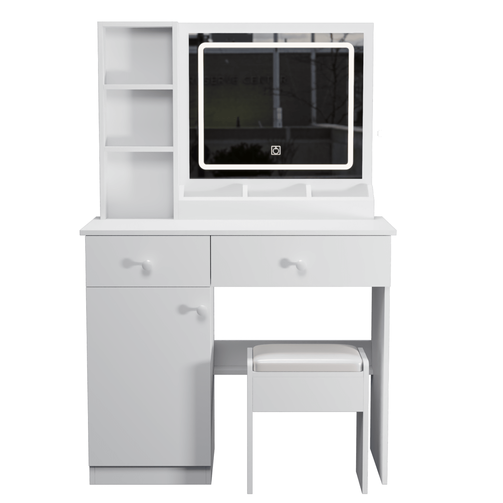 Large White Vanity Table with Adjustable LED Lights Ample Storage Contemporary Design for Bedroom or Makeup Studio