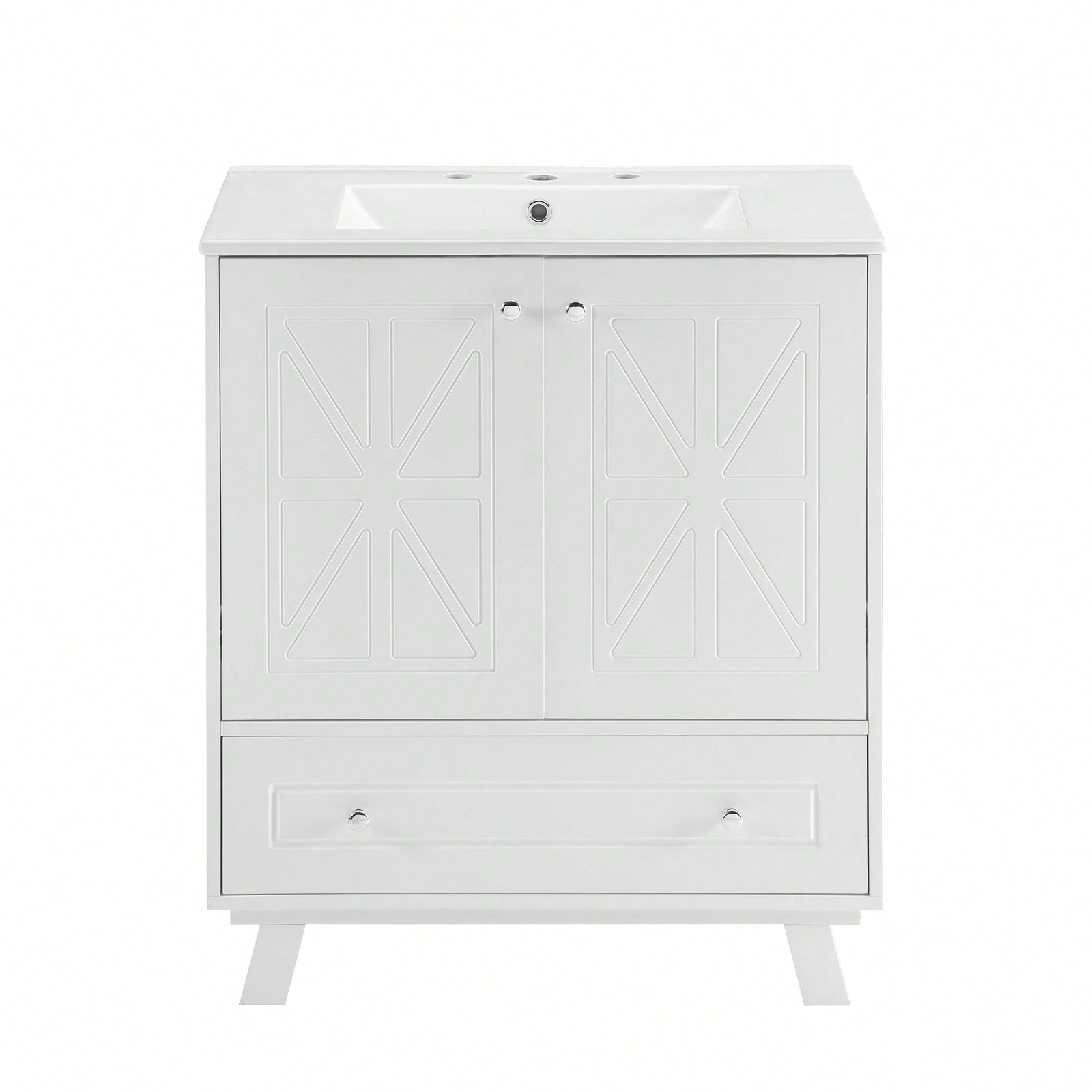 30 Inch Bathroom Vanity With Ceramic Basin Spacious Storage MDF And Solid Wood Legs Buffered Doors Easy Assembly
