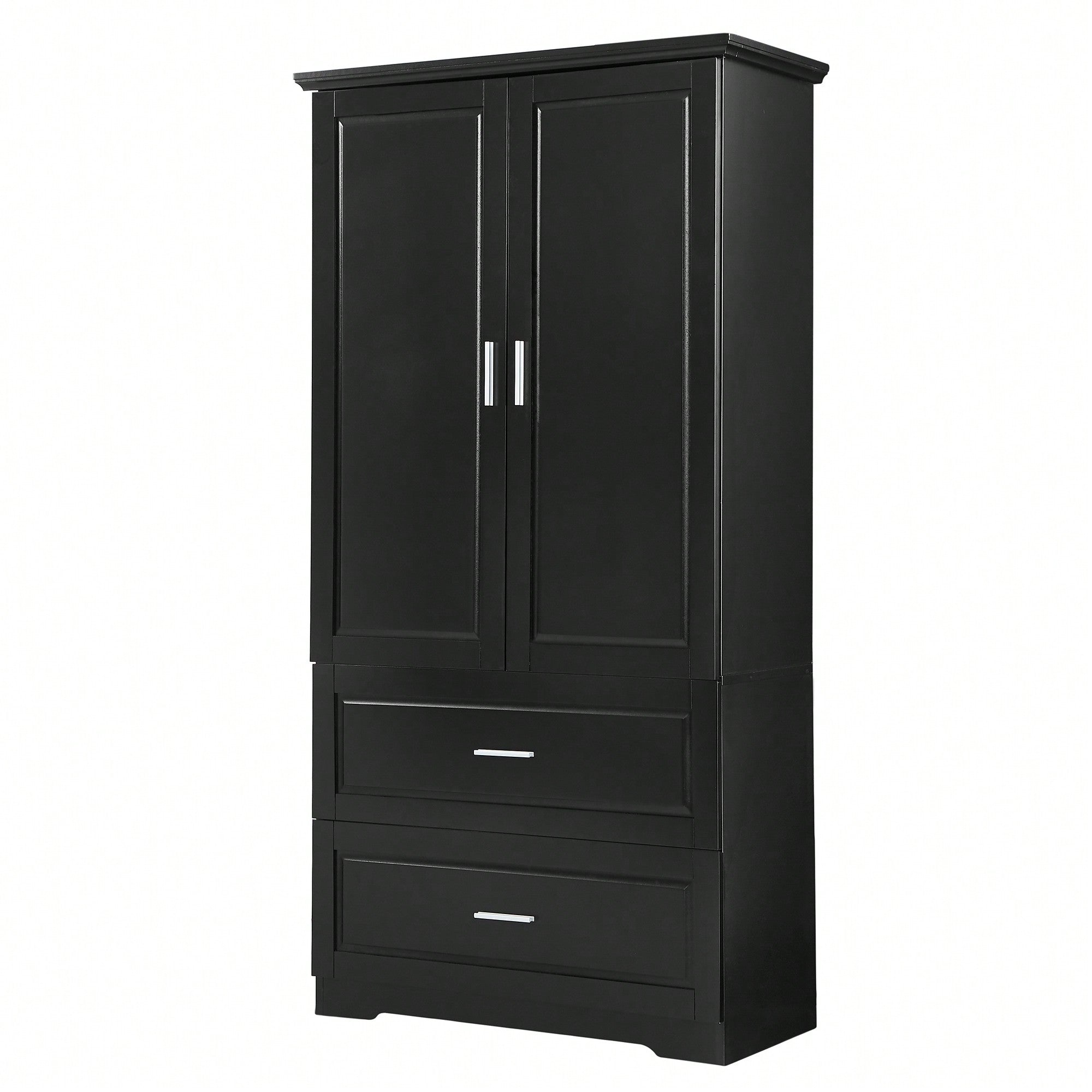 Tall Black Bathroom Storage Cabinet With Adjustable Shelves And Drawers