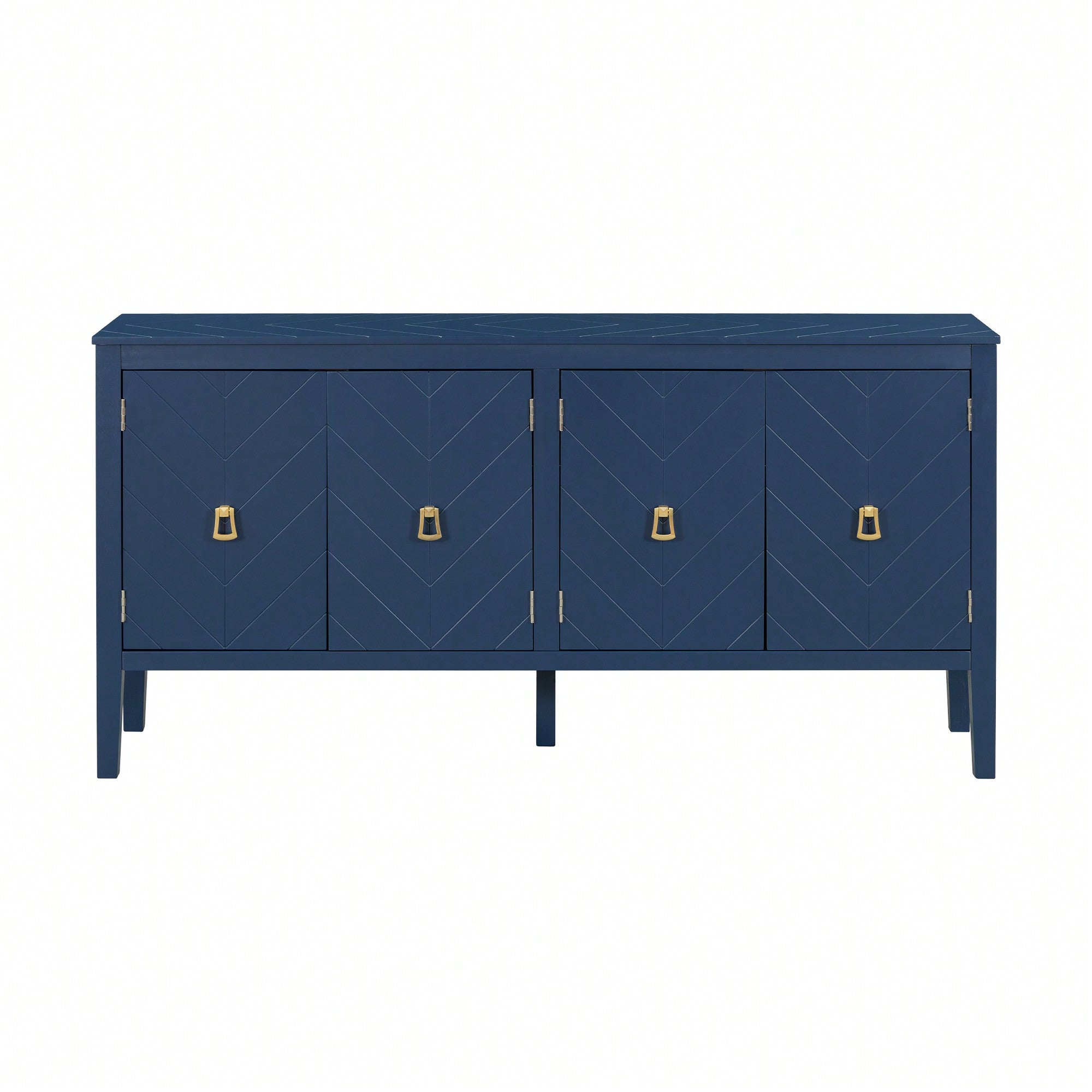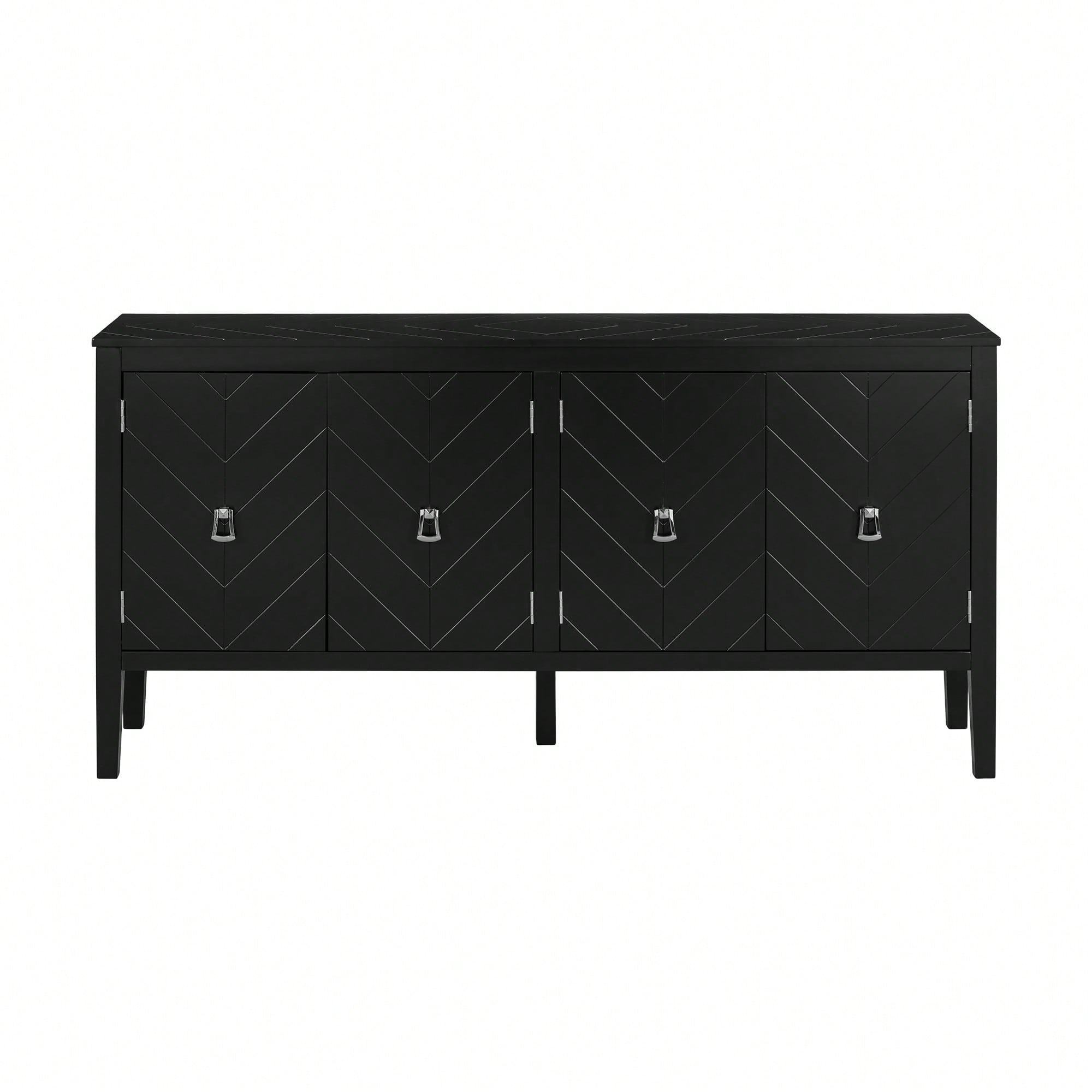 Elegant Four-Door Sideboard With Geometric Patterns And Vintage Metal Handles For Living Rooms, Entrances, And Studies