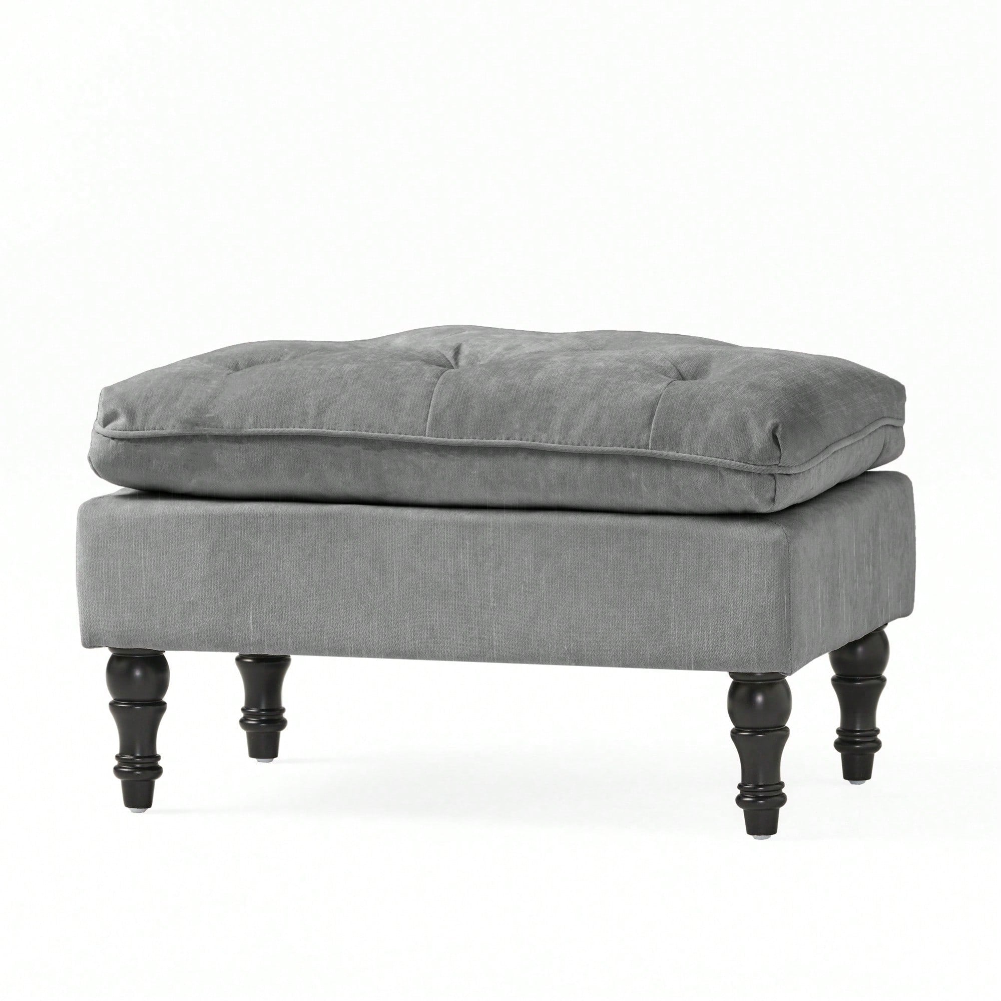 Contemporary Button Tufted Pillow Top Ottoman With Turned Legs For Living Room Seating And Style Upgrade