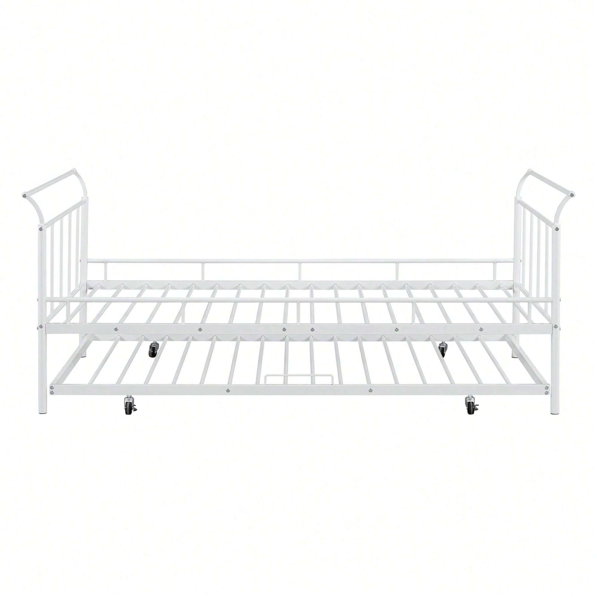 Curved Handle Design, Twin Size Trundle Bed, Durable Iron Construction, No Box Spring Needed