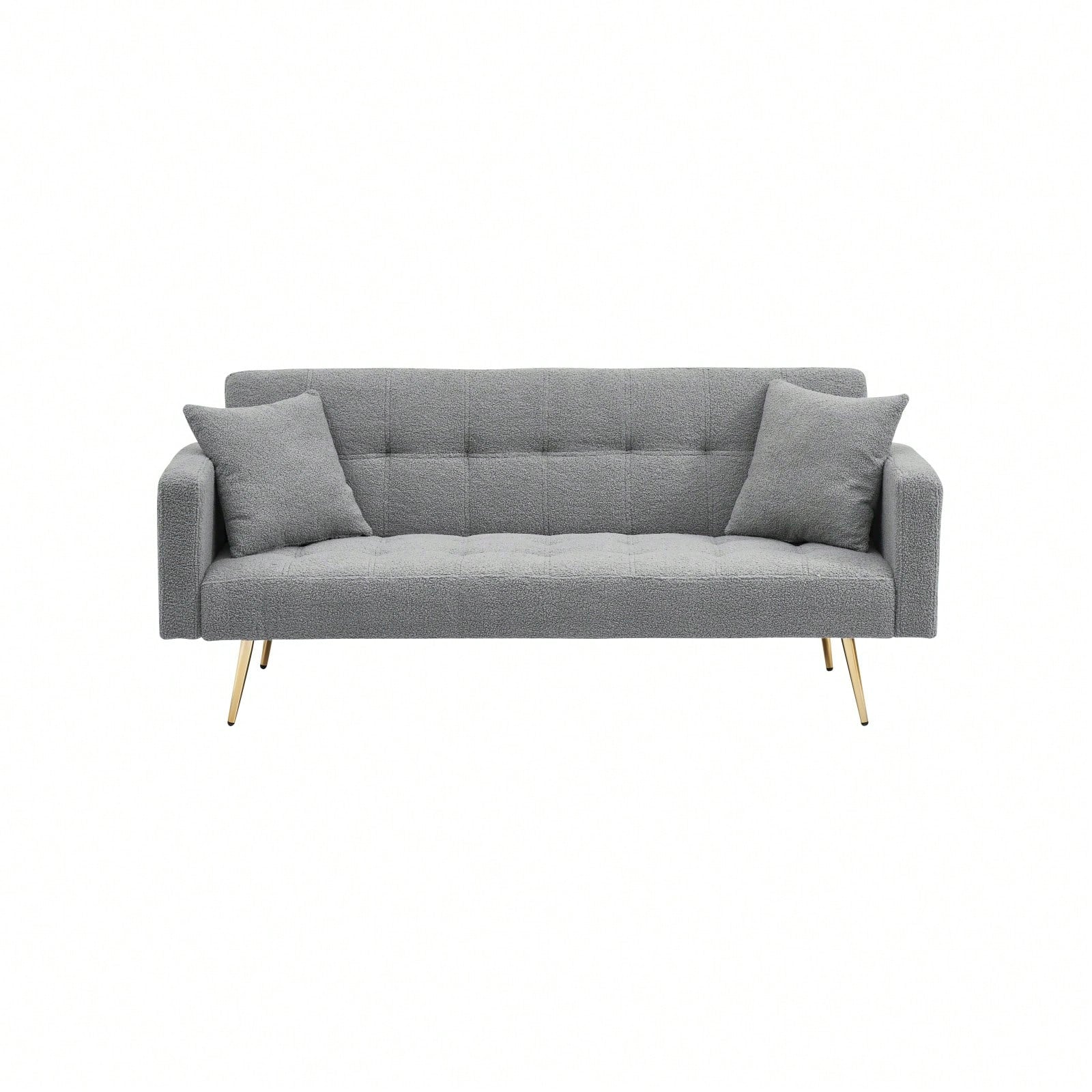 Convertible Single Sofa Bed Futon With Gold Metal Legs Teddy Fabric