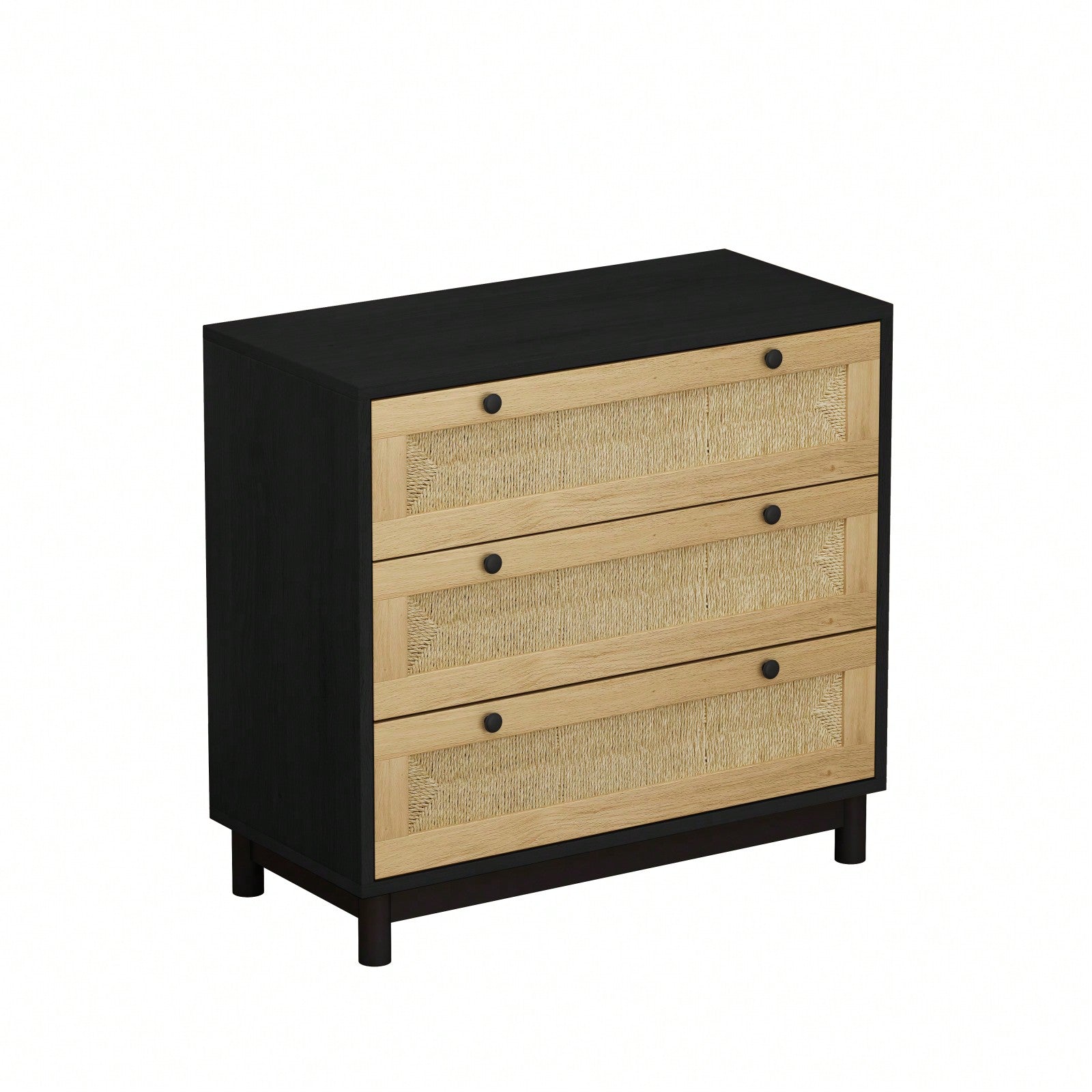 30 Inch Black Woven Storage Cabinet with 3 Easy Glide Drawers for Bedroom Living Room or Dining Room