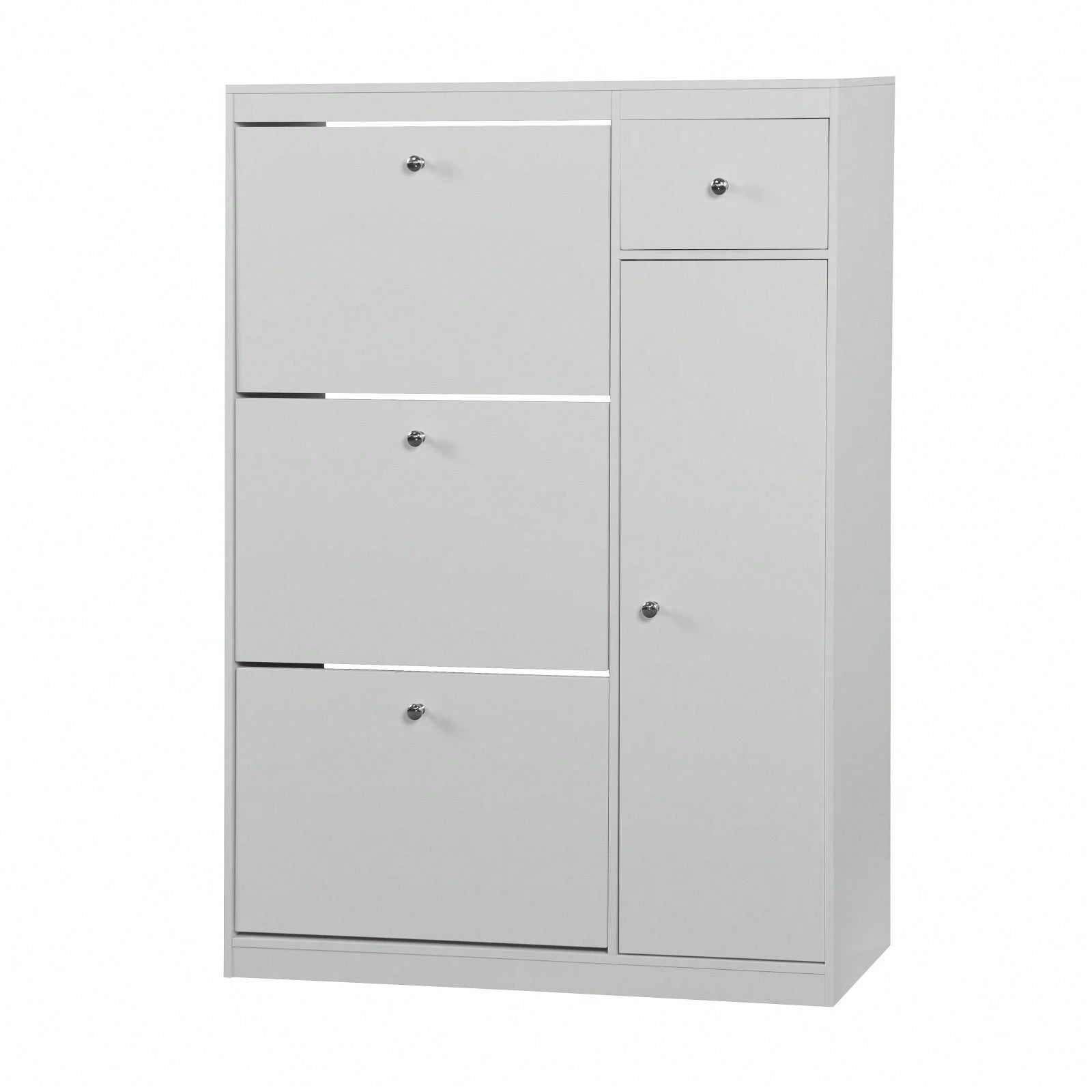 Freestanding Slim Shoe Cabinet with Flip Drawers Adjustable Storage Shelf Anti-Tipping Design Modern White Shoe Rack for Entryway