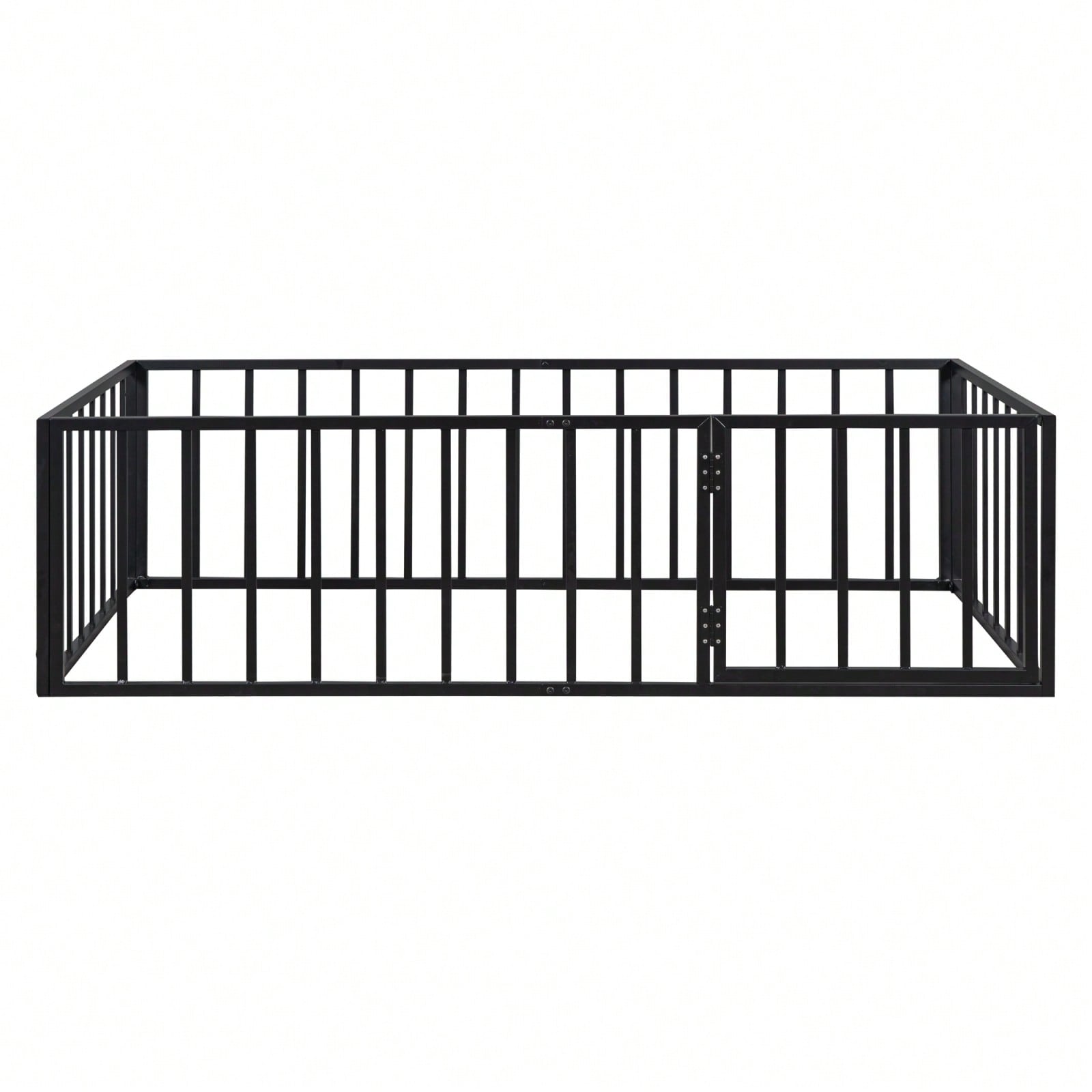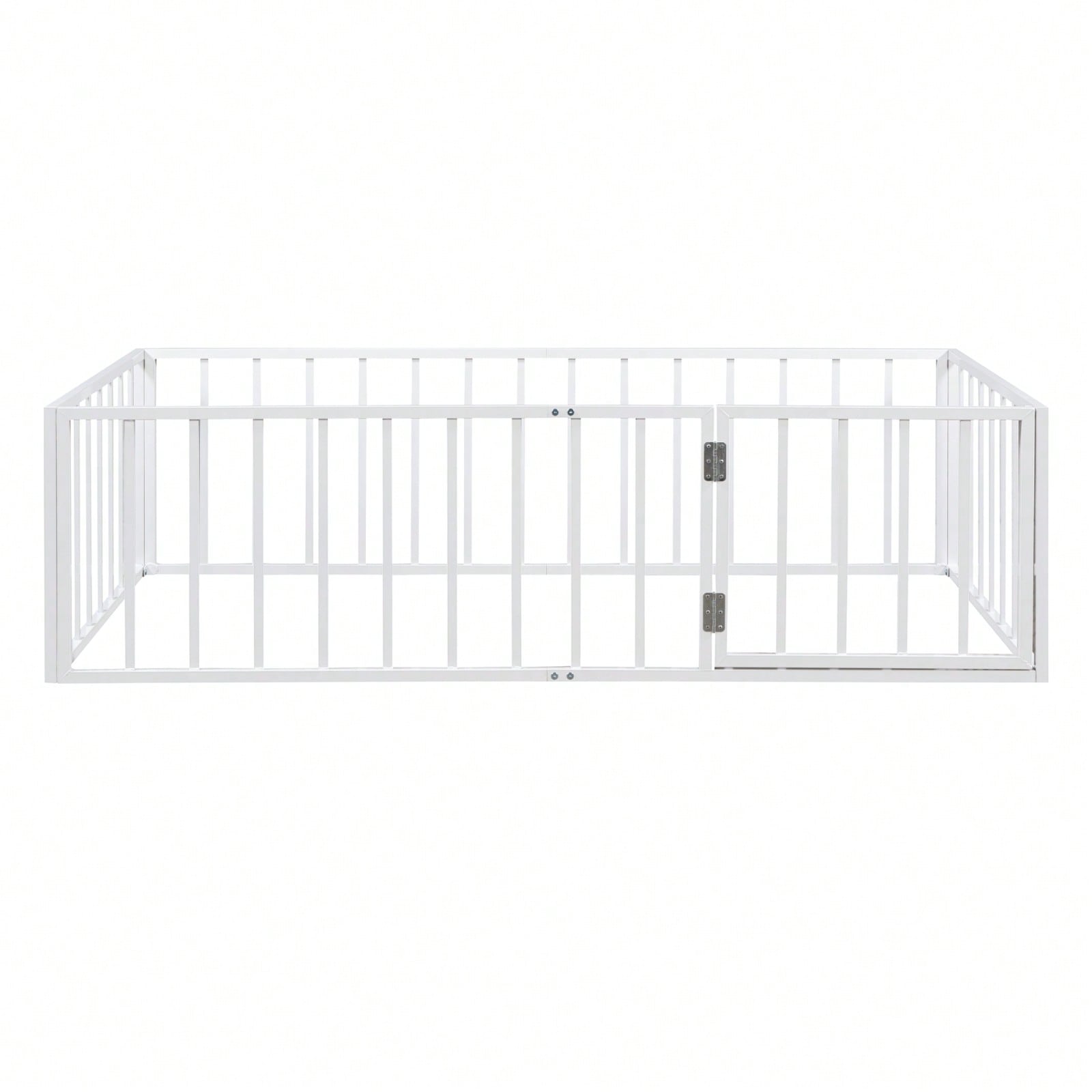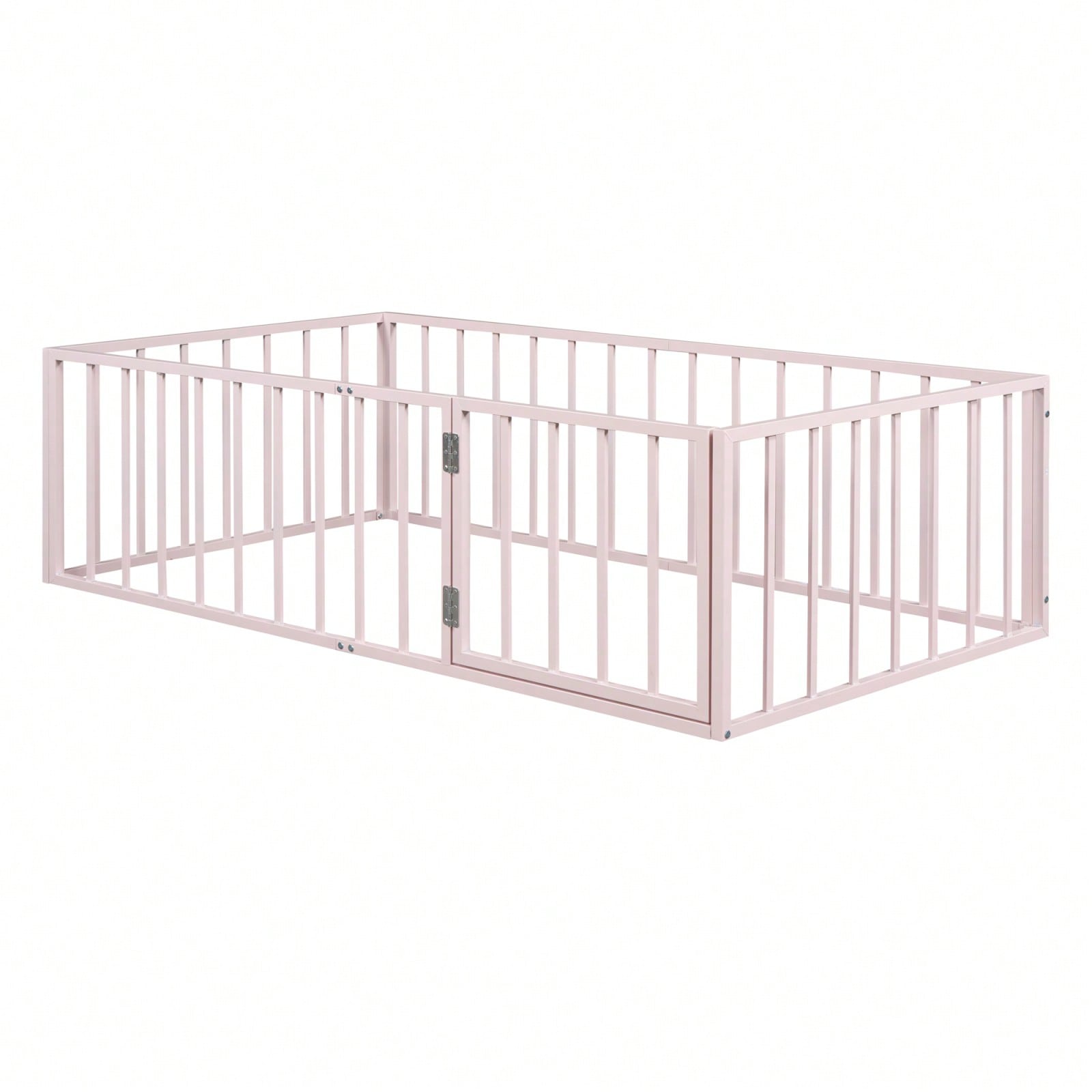 Twin Size Metal Floor Bed Frame with Fence and Door Sturdy Durable Fun Design Easy Assembly Ideal for Play Space