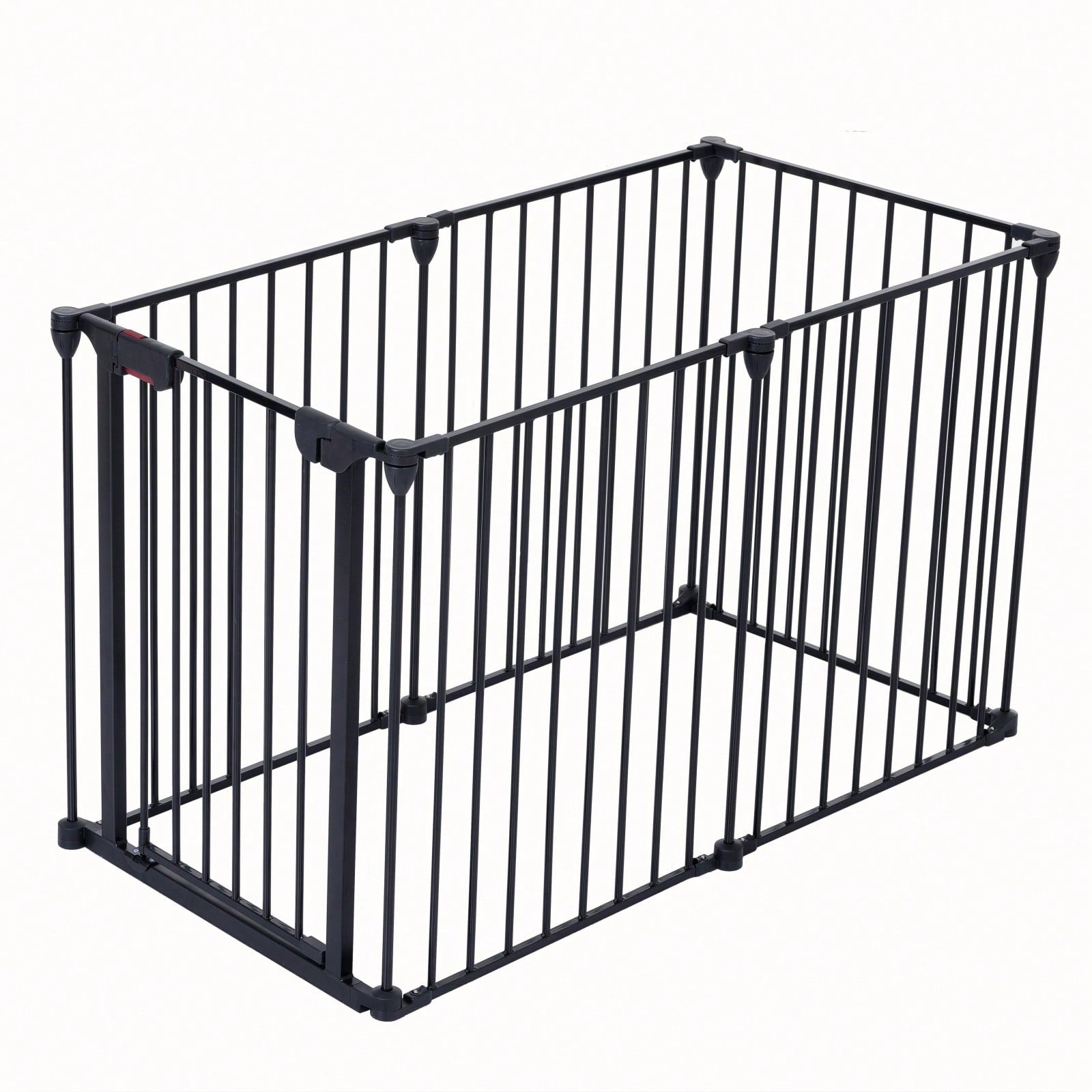 Configurable 6 Panel Metal Safety Gate for Pets and Kids - Versatile Play Yard and Barrier with Walk Through Door for Stairs and Fireplaces