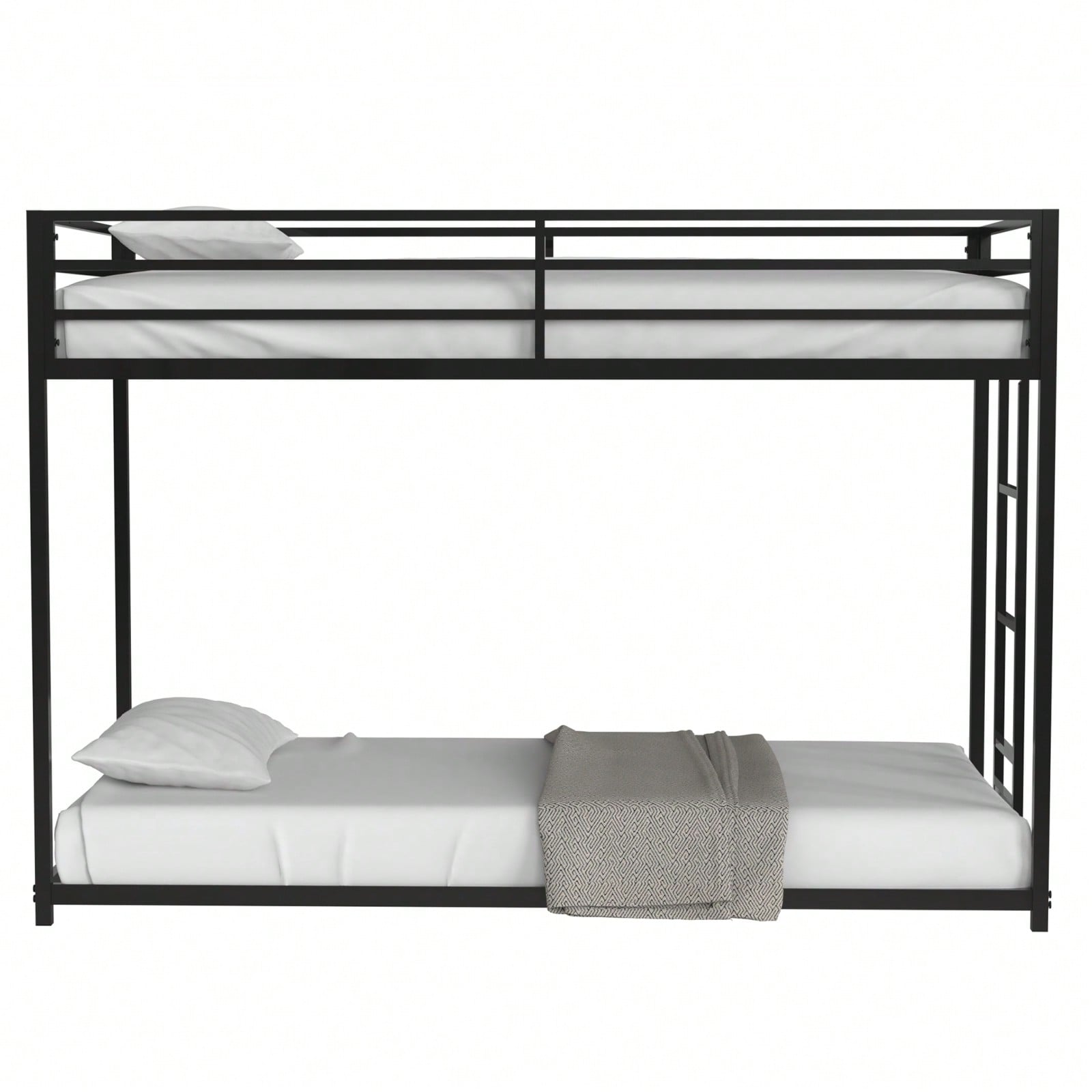 Durable Twin Over Twin Metal Bunk Bed Frame with Guardrails and Ladder for Kids Teens Adults Easy Assembly