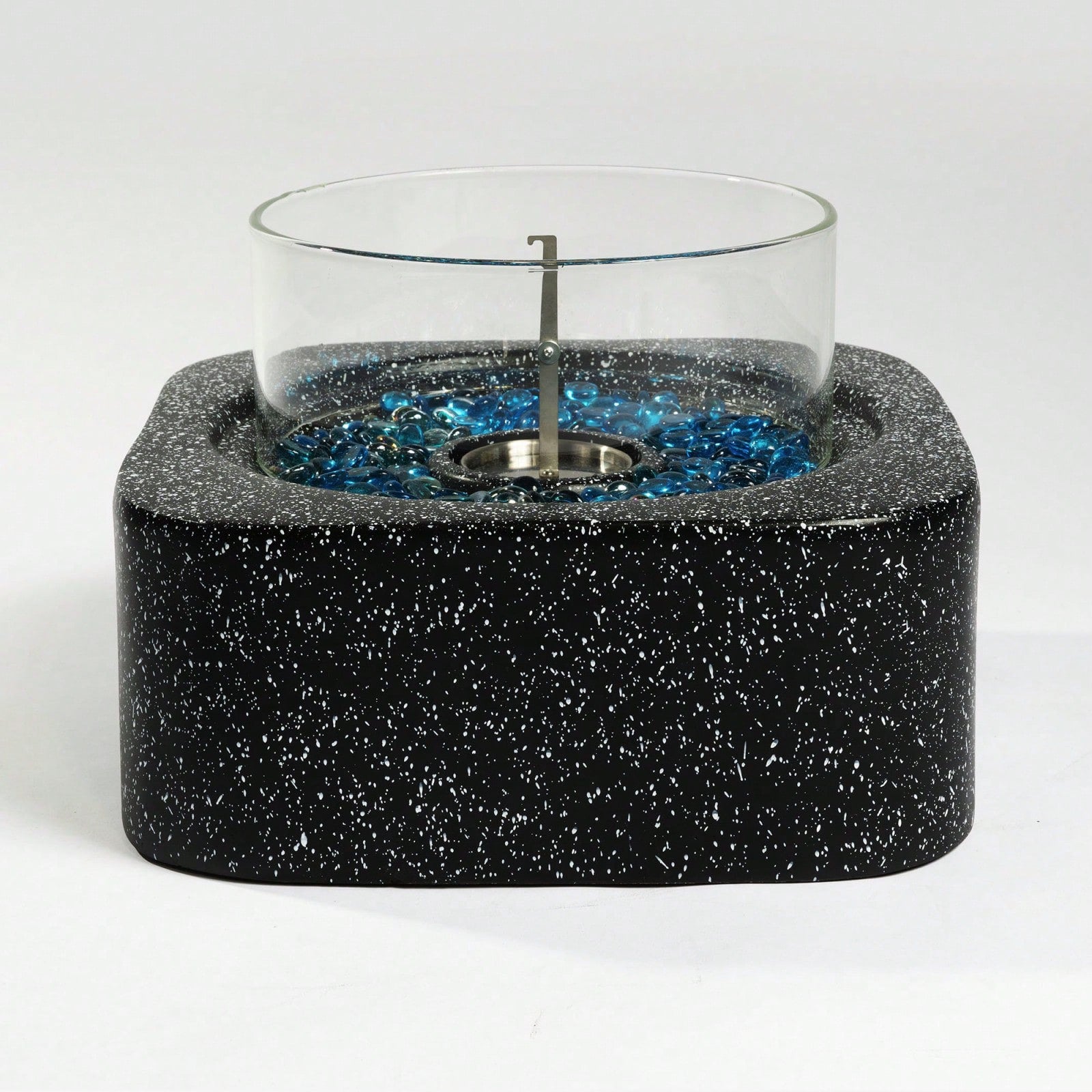 Ethanol Tabletop Fire Pit with Glass Wind Guard 3000BTU Mini Indoor Outdoor Concrete Fire Bowl