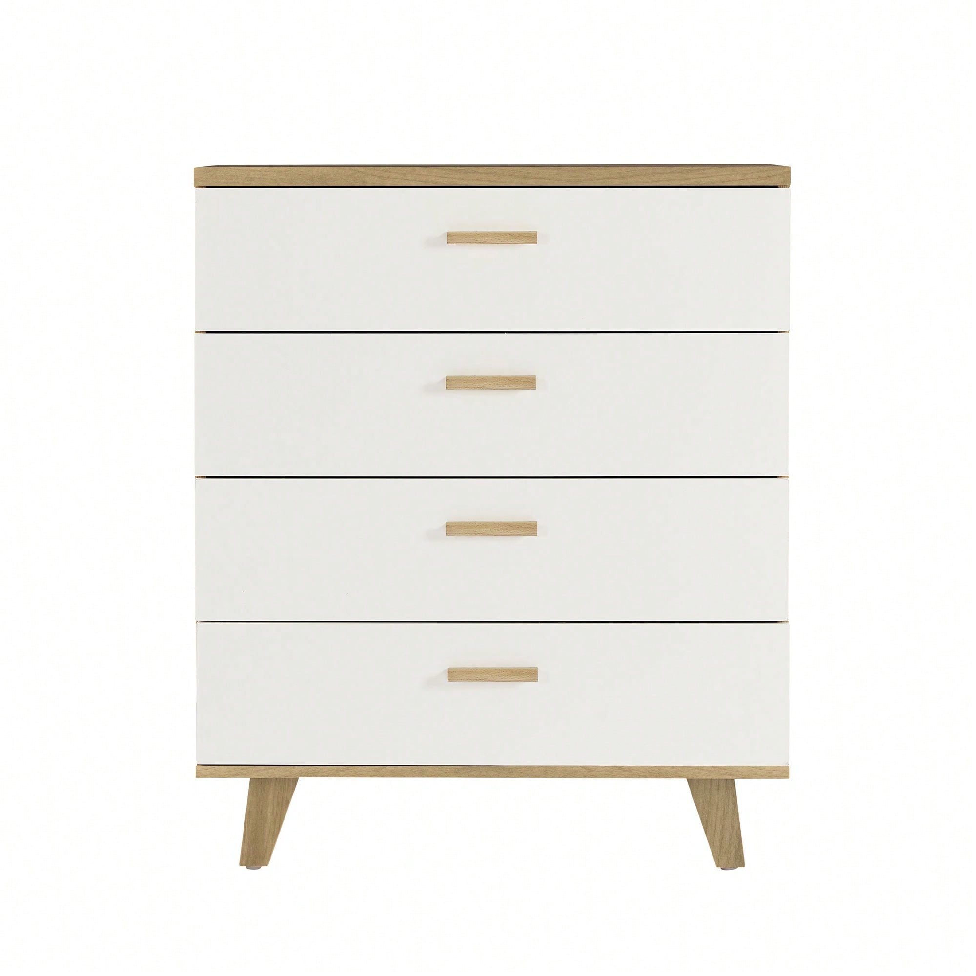 Vintage 4 Drawer Bevel Design Dresser Wood MDF Storage Chest for Bedroom Nursery Playroom Easy Glide Drawers