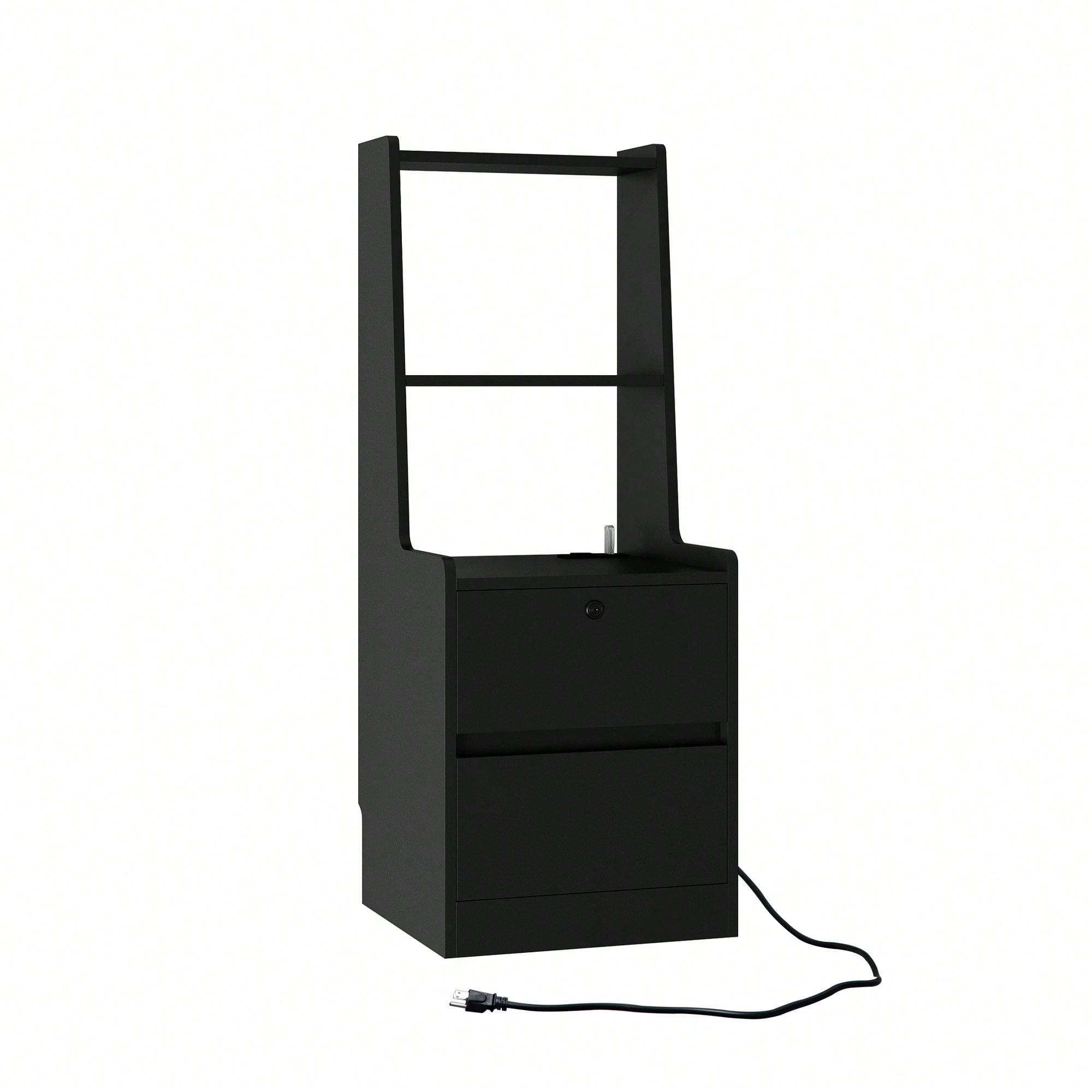 Modern Nightstand with Charging Station and Night Light - Stylish Storage Cabinet for Bedroom with Bookshelf