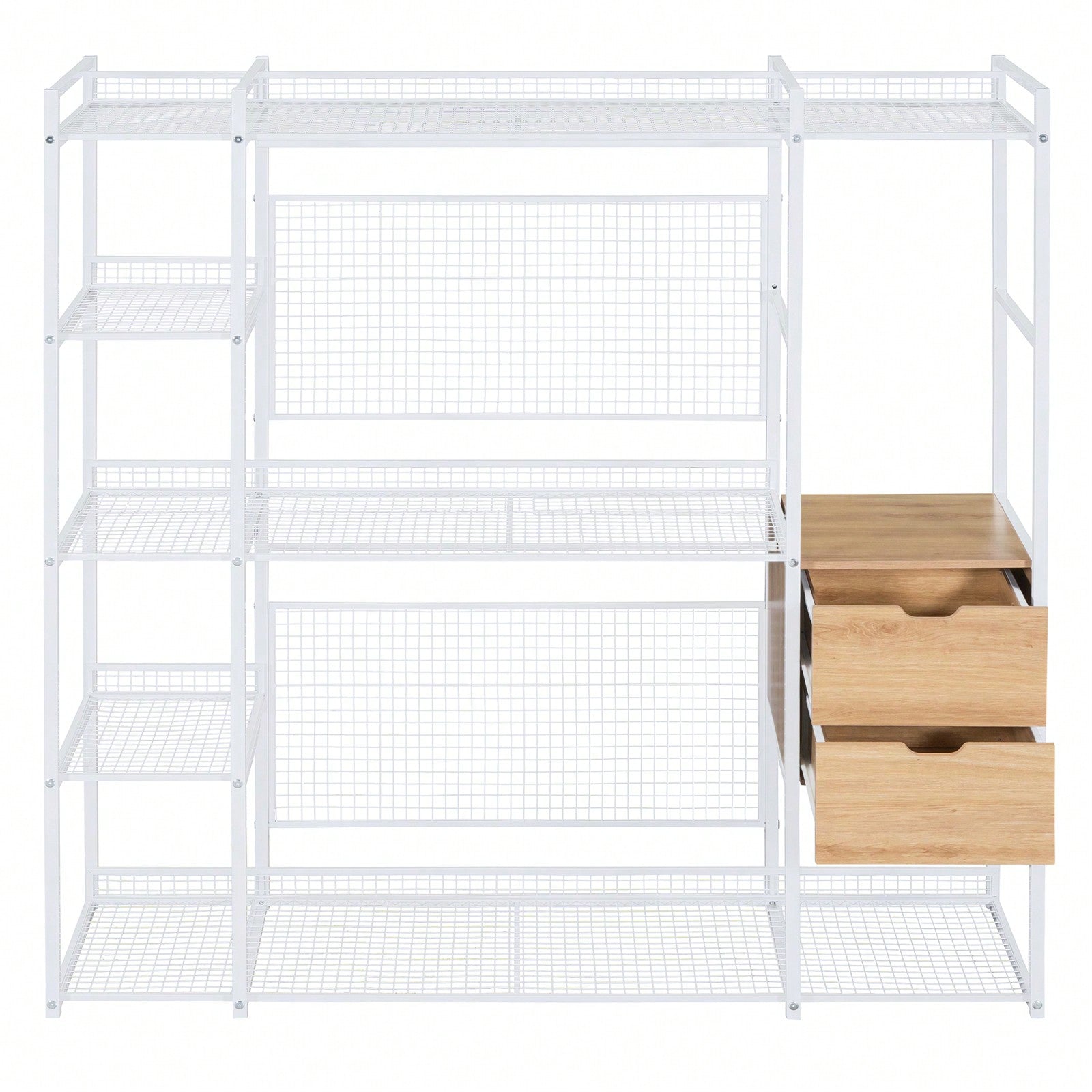 Industrial Open Wardrobe With Hanging Rails, Shelves, And Drawers, Large Clothing Rack With Storage For Bedroom