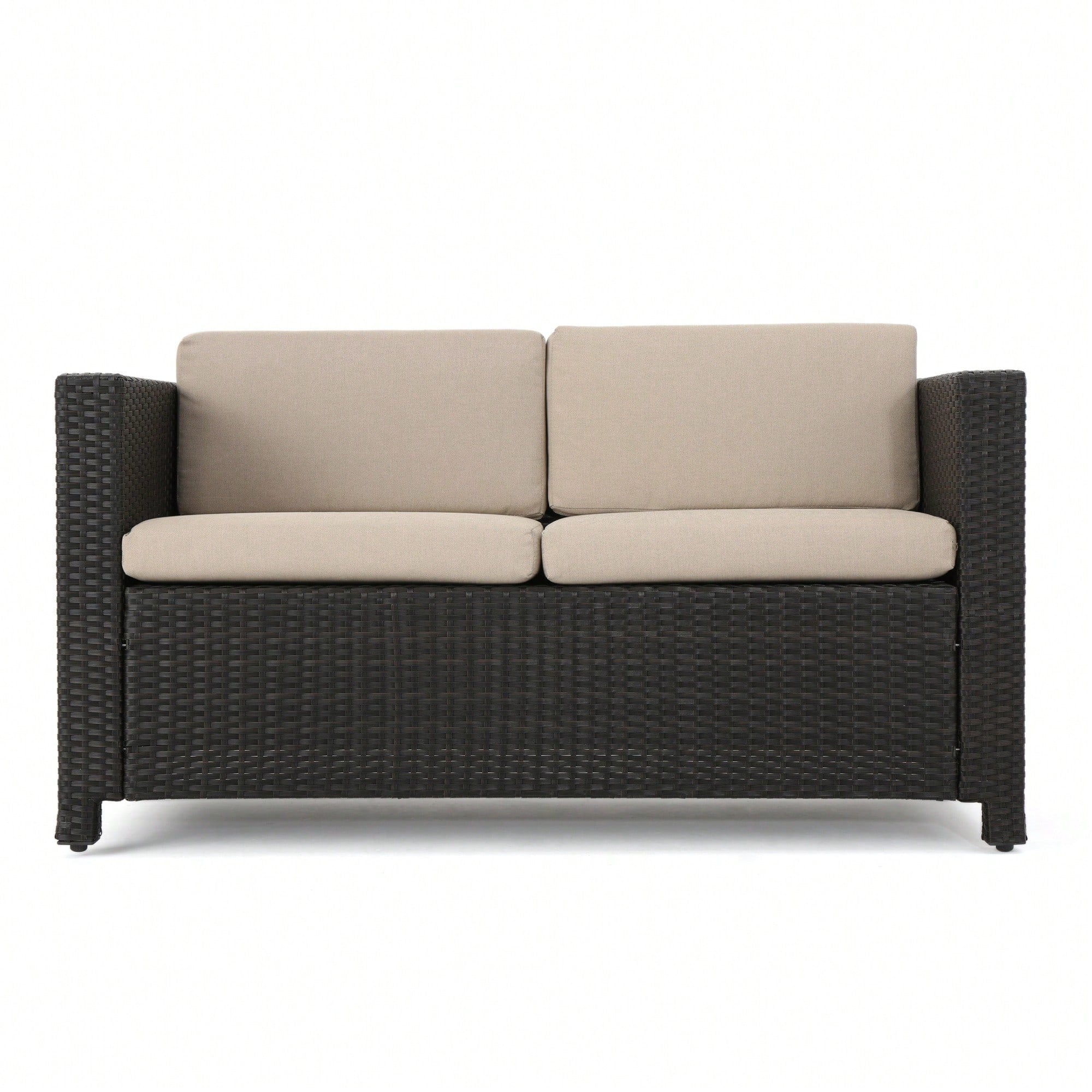 Regular price $391.99 USDSale price $391.99 USD Regular priceUnit price per$671.99 USDSale Sold out- Charming loveseat perfect for outdoor relaxation- Features water-resistant cushions for summer comfort- Made with durable polyethylene wicker and an iron frame- Handcrafted details add to...