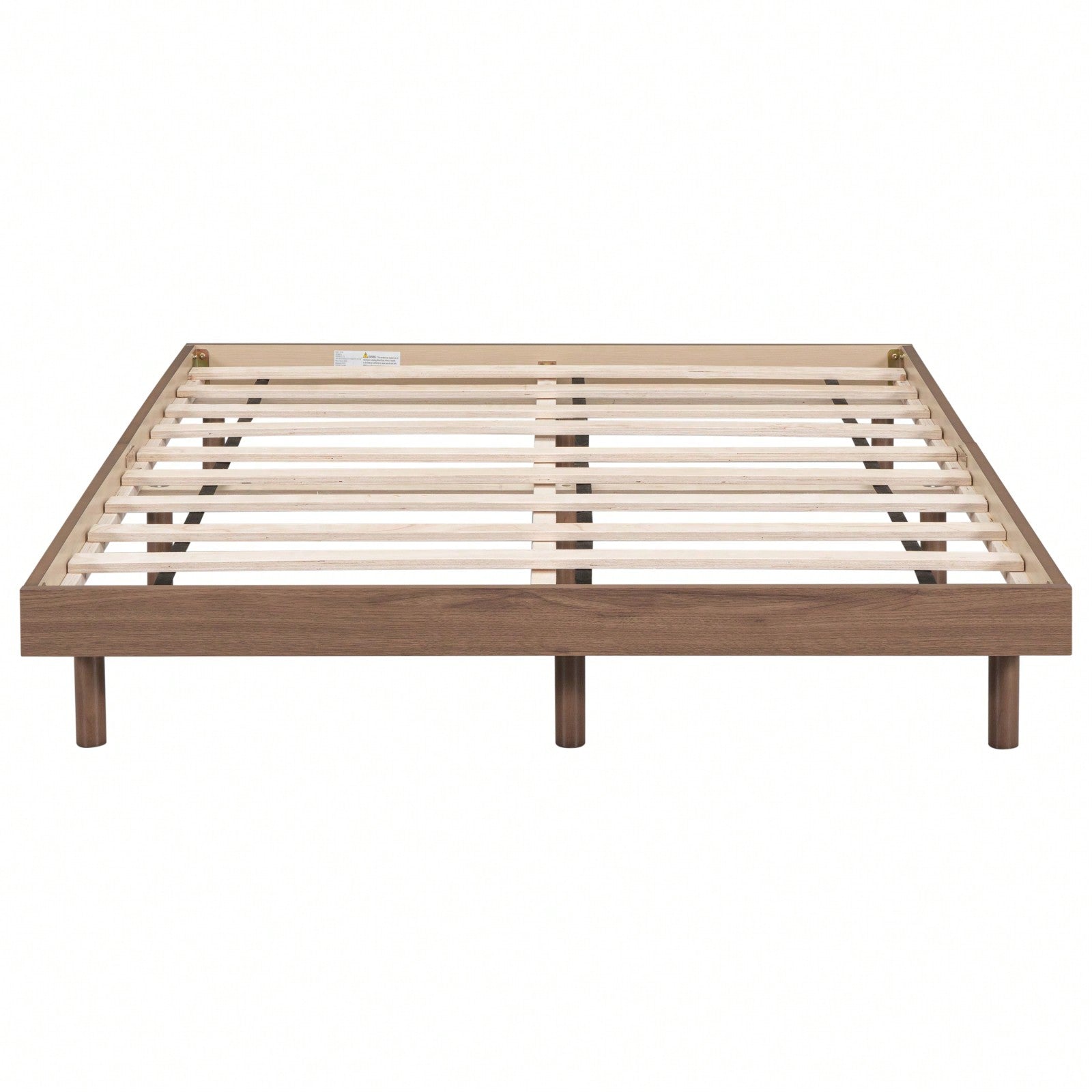 Full Size Wood Platform Bed Frame, Retro Style Bed With Rectangular Headboard