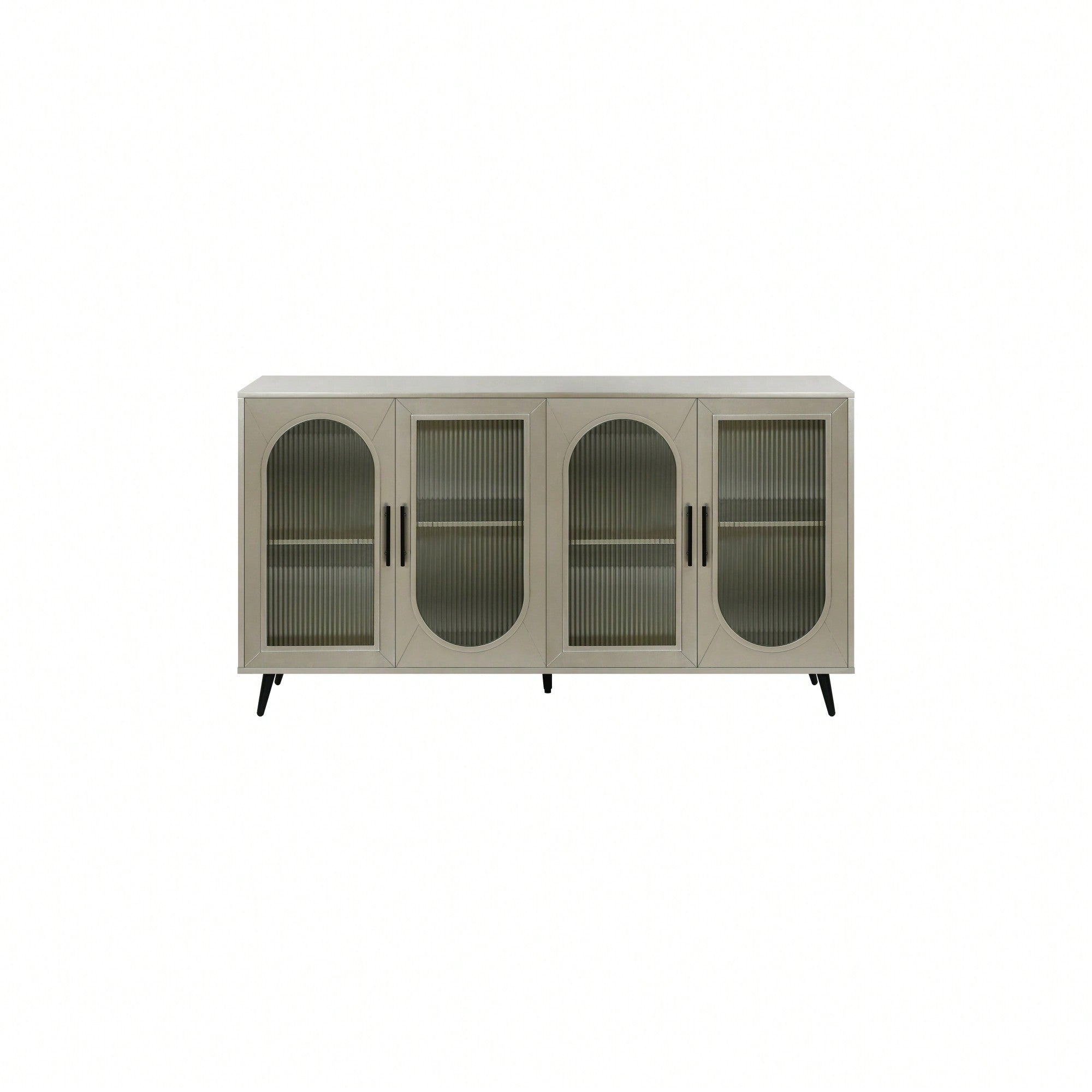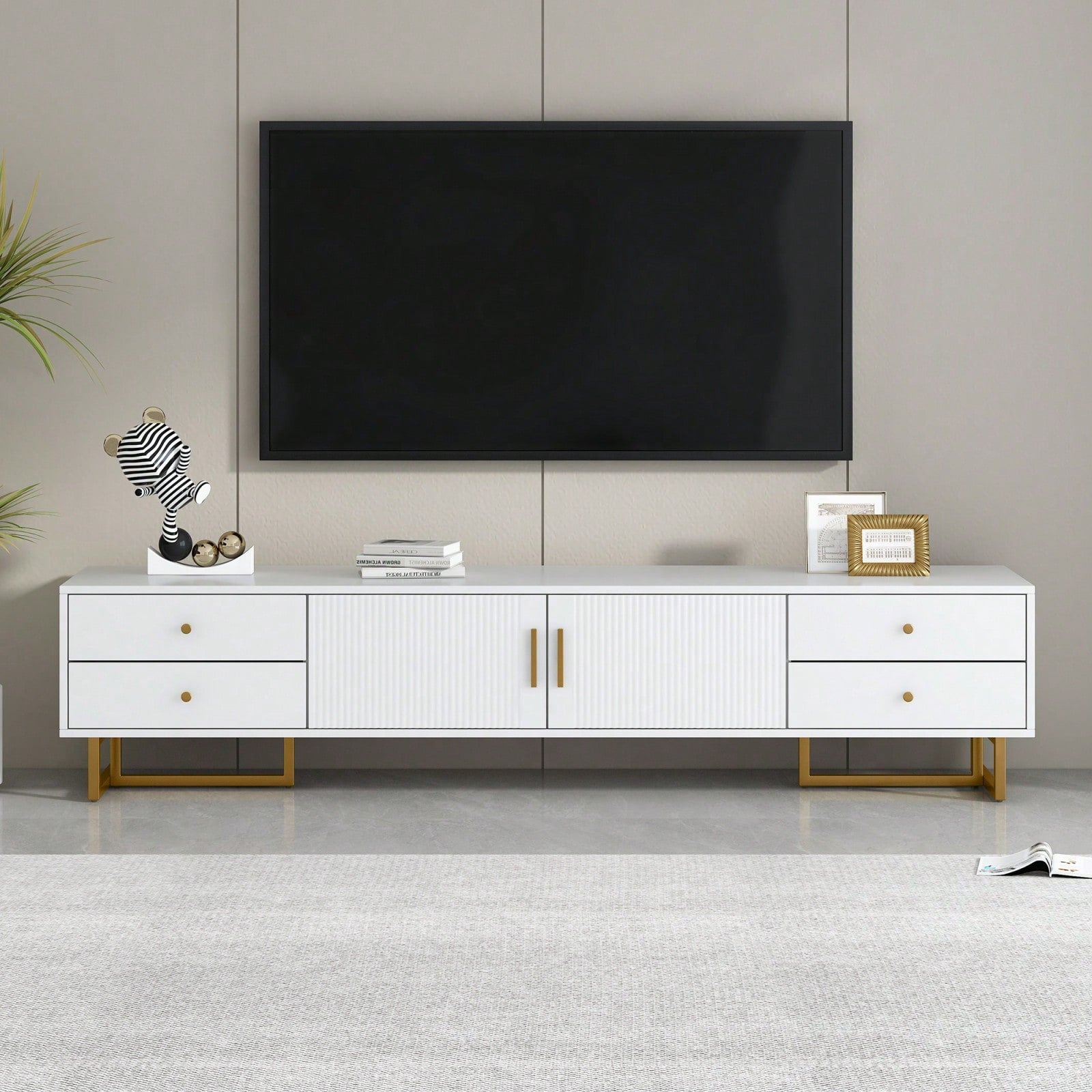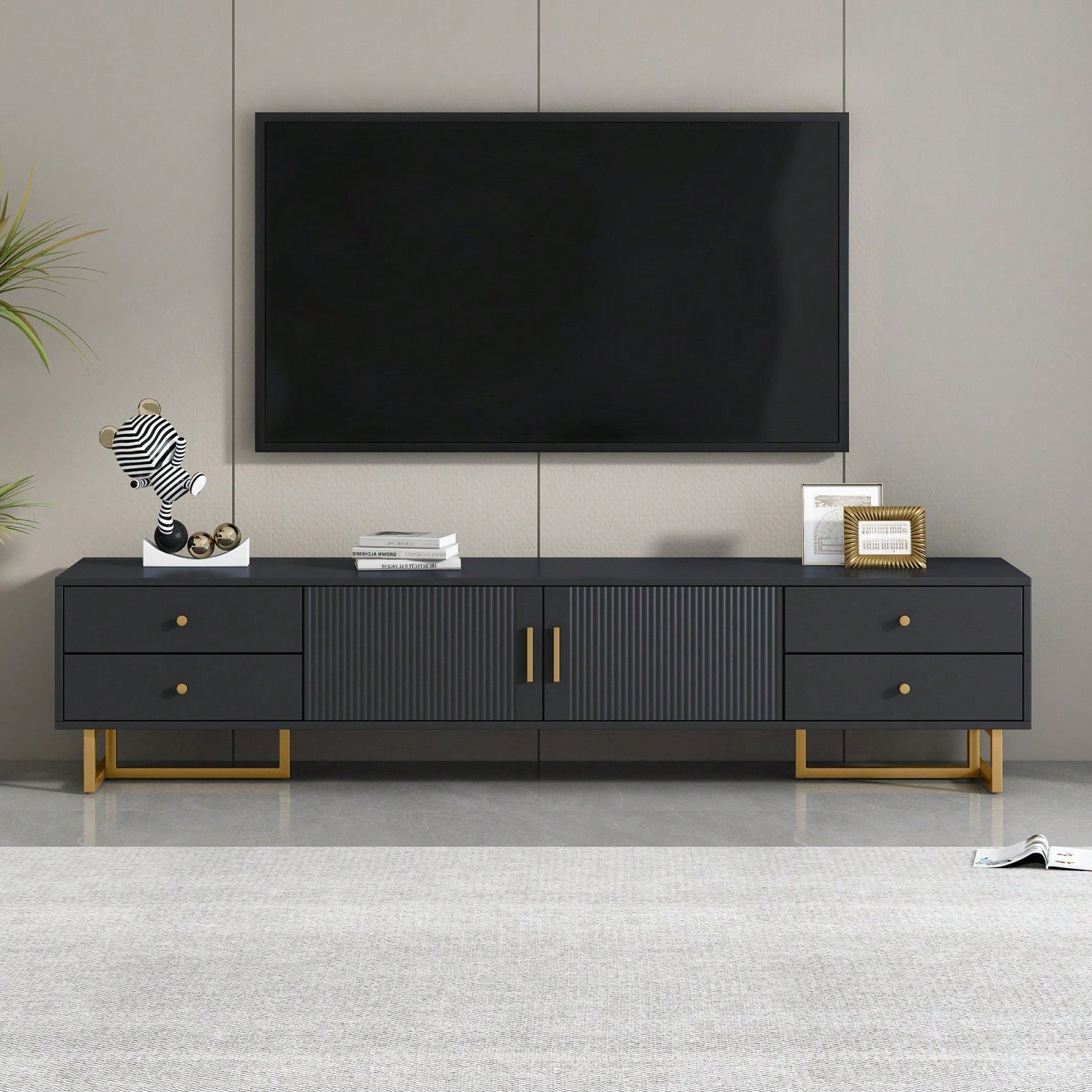 Modern TV Stand With Storage, Entertainment Center For 65+ Inch TV, Wave Groove Design, T-Shaped Metal Frame