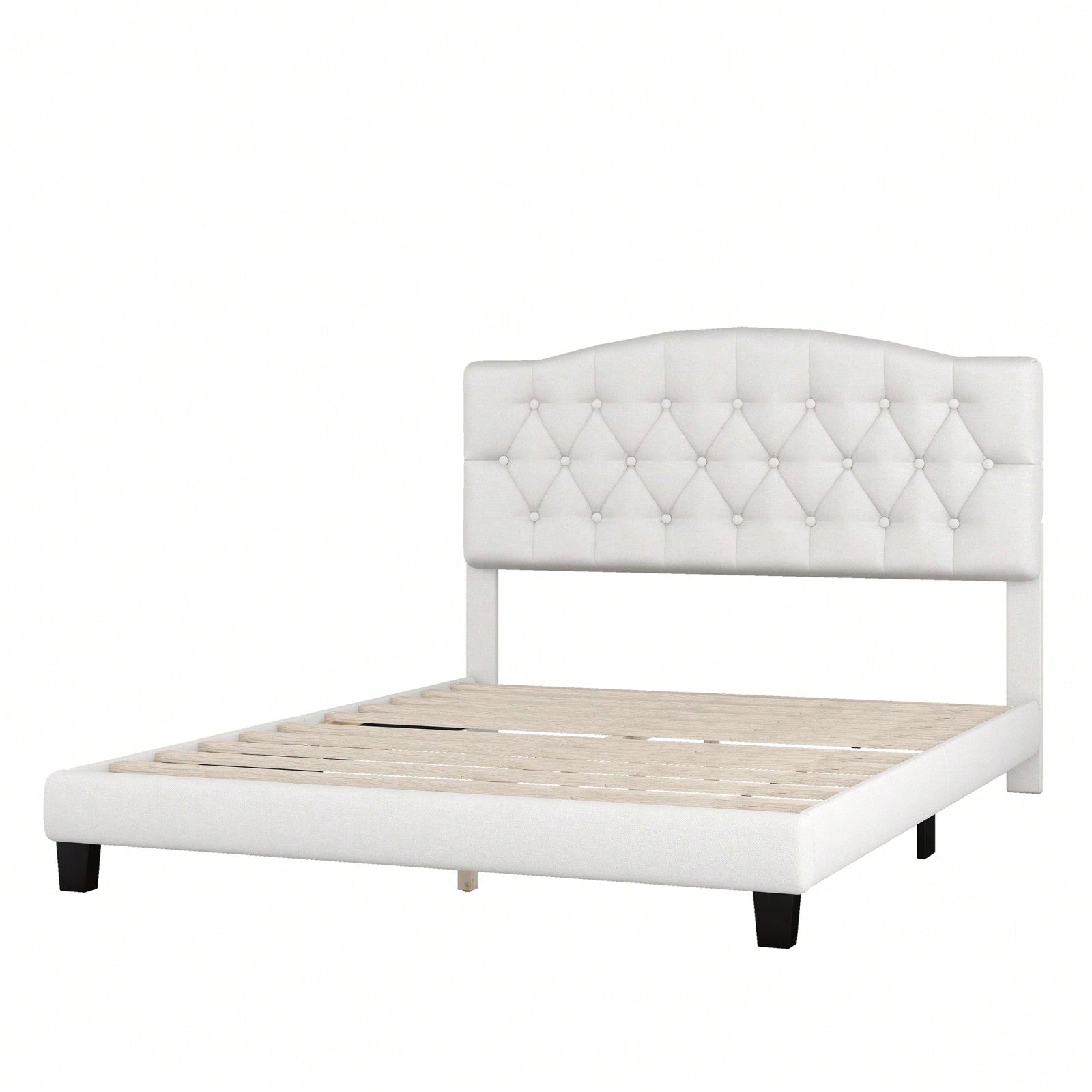 Upholstered Platform Bed With Saddle Curved Headboard And Diamond Tufted Details