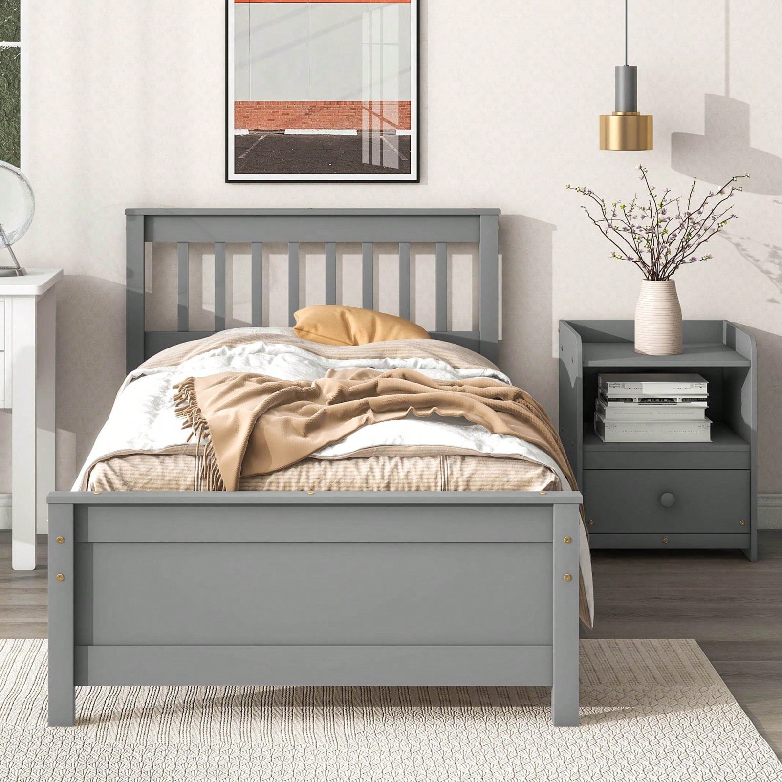 Twin Bed With Headboard And Footboard For Kids, Teens, Adults,With A Nightstand