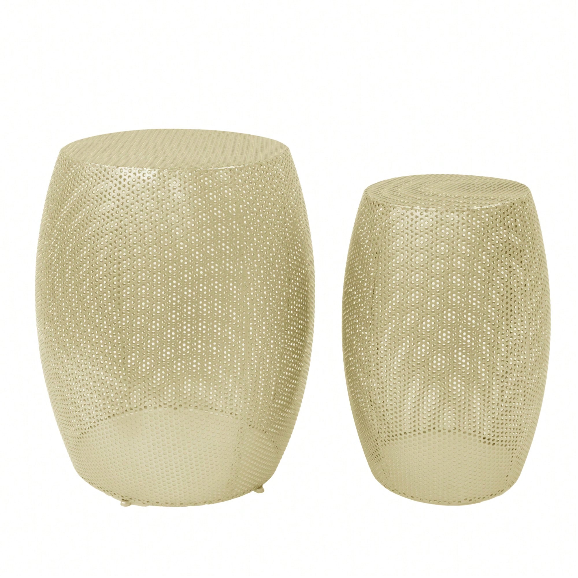 Elegant Round Hollow Metal Side Table Duo For Modern Living Spaces