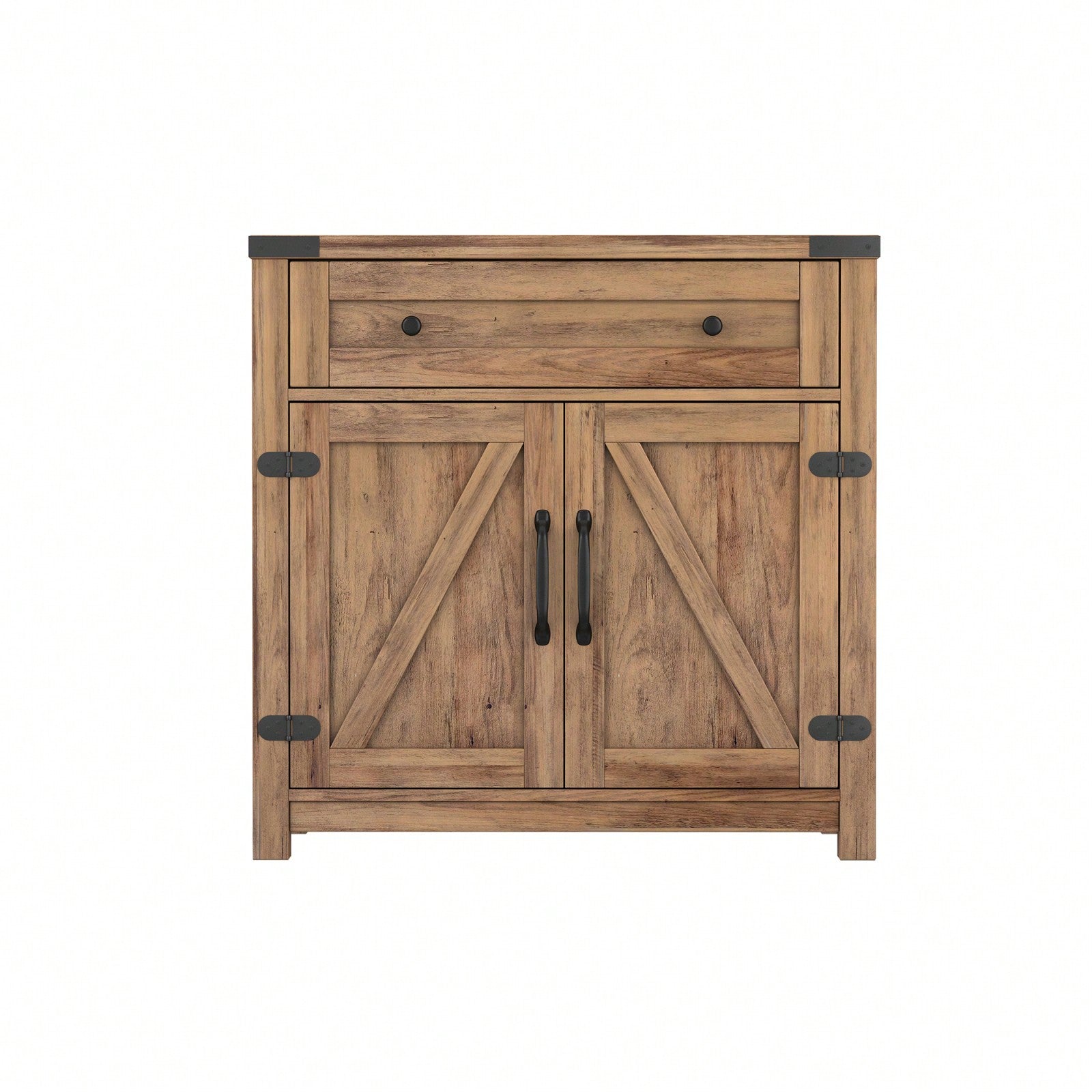 Modern Farmhouse Black Pine Double Barn Door Cabinet 30 Inch Rustic Storage with Adjustable Shelf and Drawer