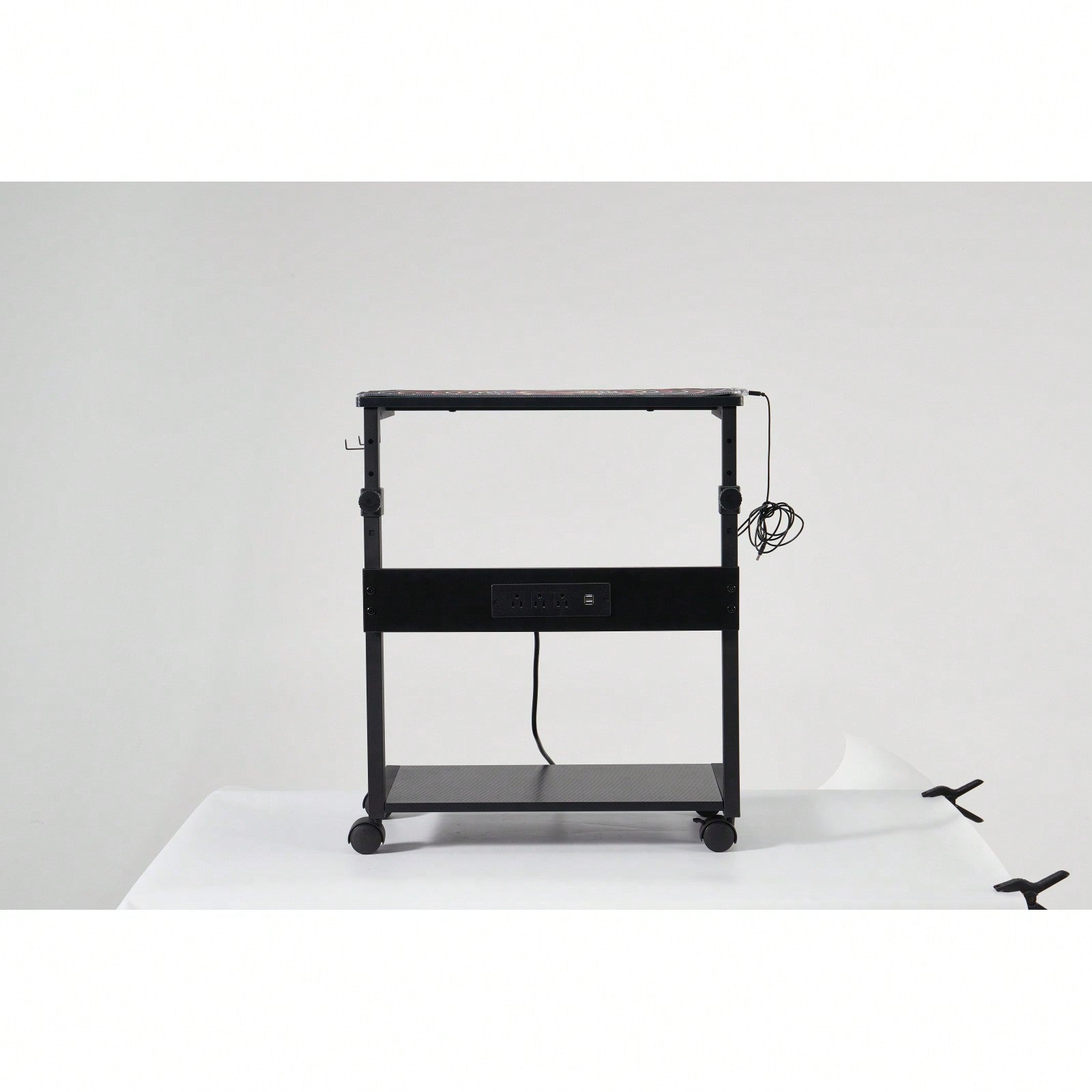 Height Adjustable Mobile PC Cart with Wheels for ATX Cases 2-Tier Storage Shelf Supports 100 lbs Ideal for Home and Office Organization