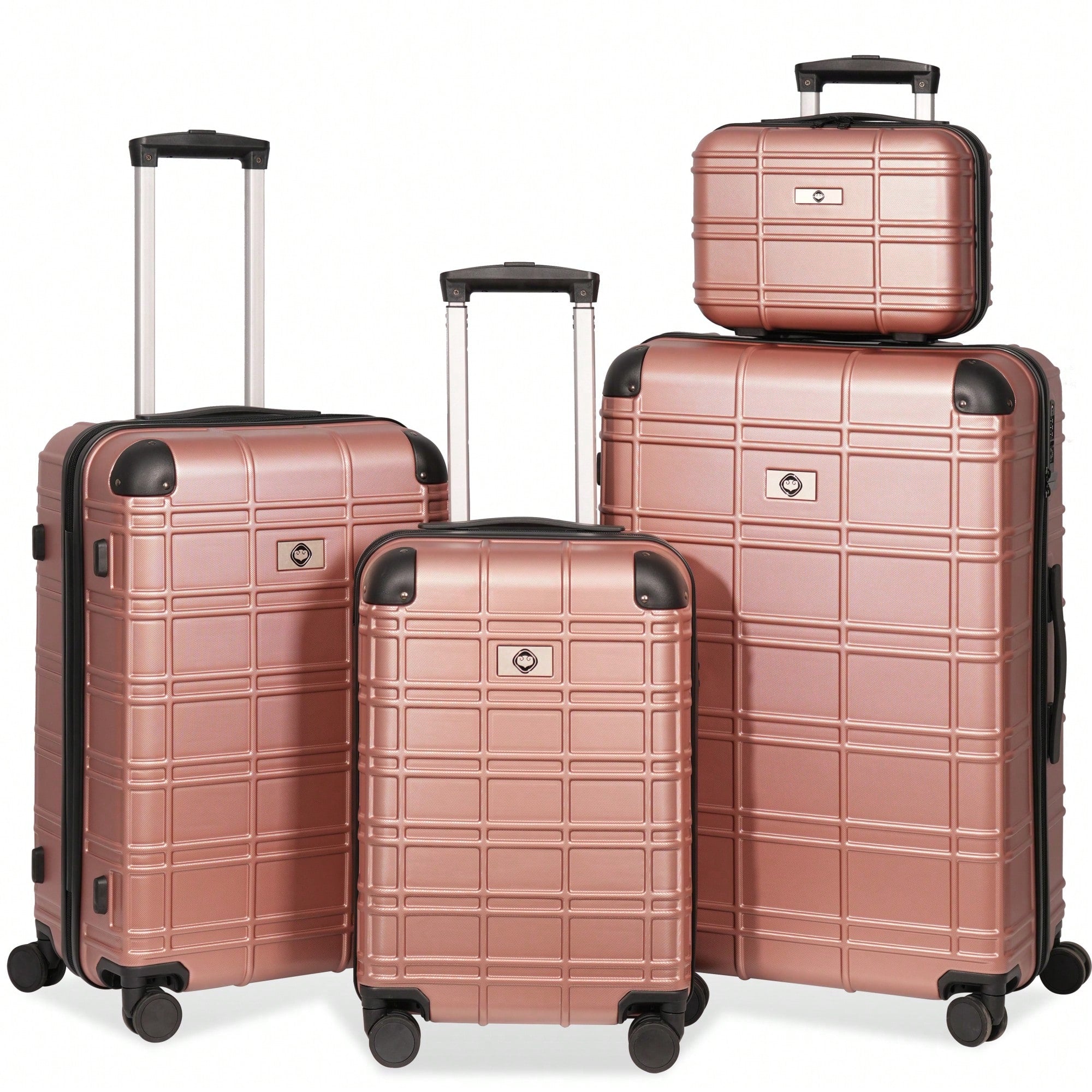 Lightweight Rose Gold Hardshell Luggage Set 4pcs with 360-Degree Spinner Wheels and TSA Lock Suitcases for Travel 12 20 24 28 Inches