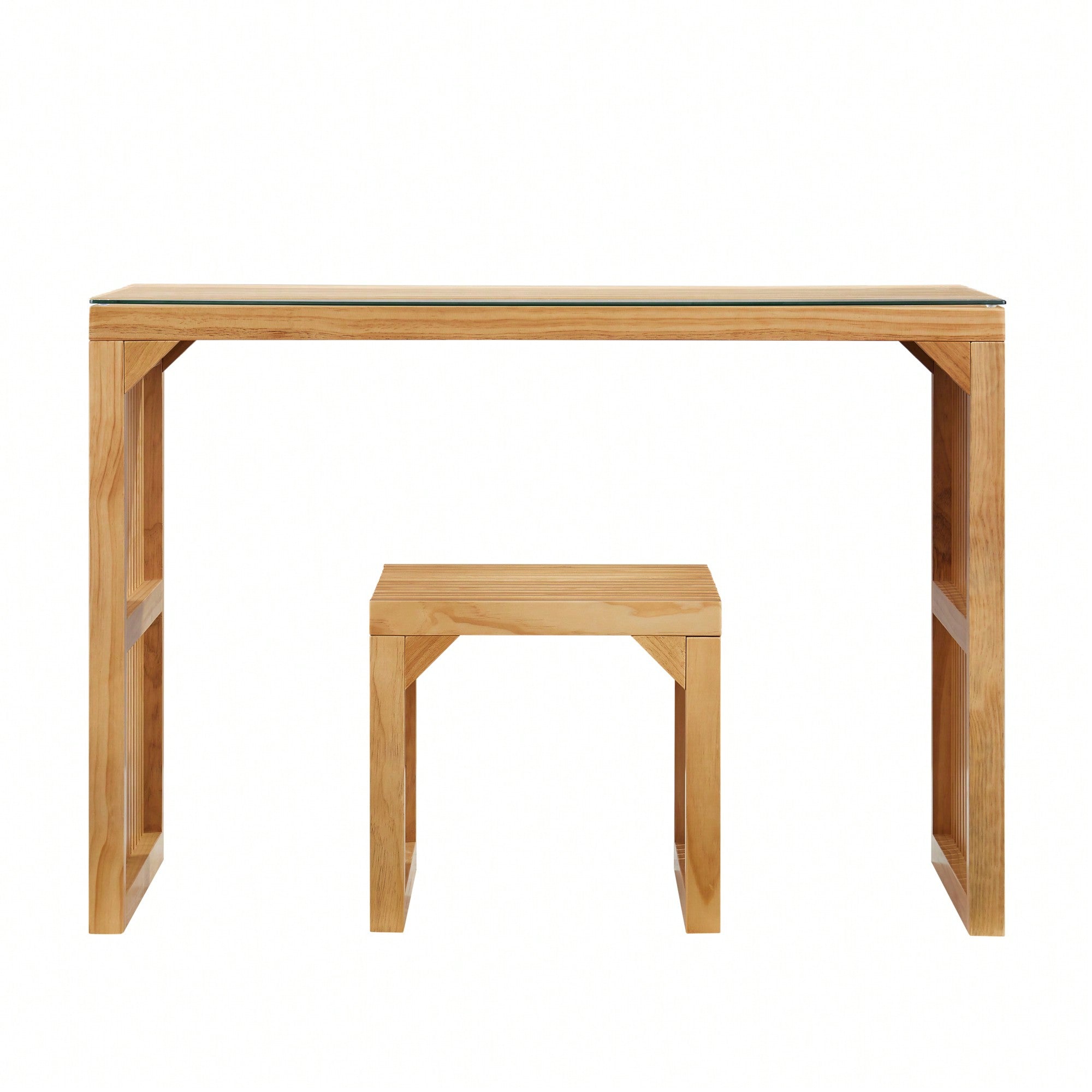 Multi-Functional Solid Pine Dining Bench And Table Set With Tempered Glass Top For Entryway Living Room Kitchen And Bedroom