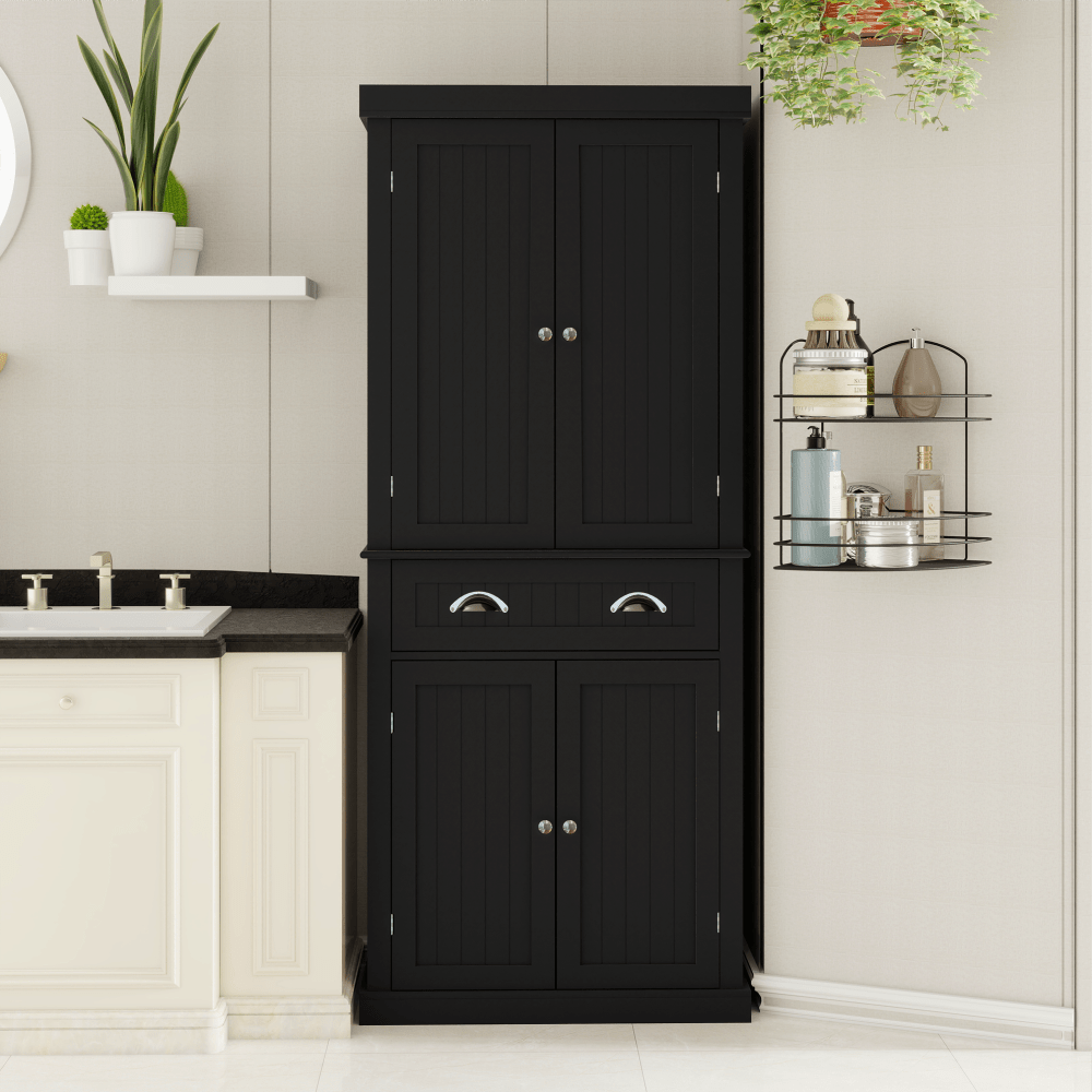 Elegant 71-Inch Kitchen Pantry Storage Cabinet With Adjustable Shelves, Drawer, And 4 Doors For Dining Room And Laundry - Black Finish