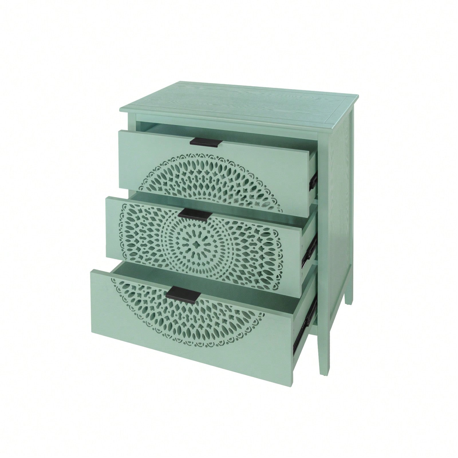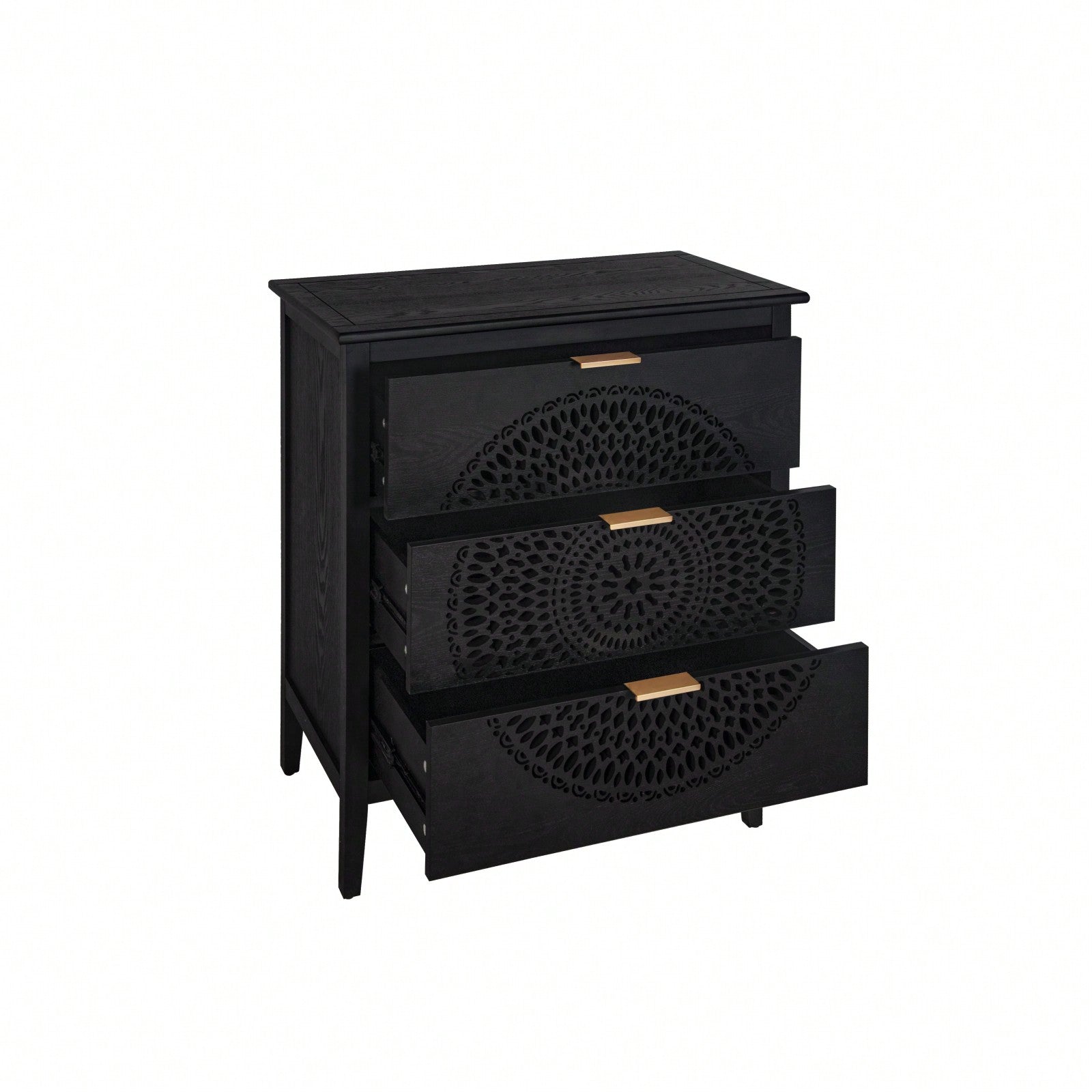 Hollow-Carved 3 Drawer Storage Chest With Metal Handles For Entryway Living Room Bedroom, Sturdy Pine Legs And Anti-Tipping Device