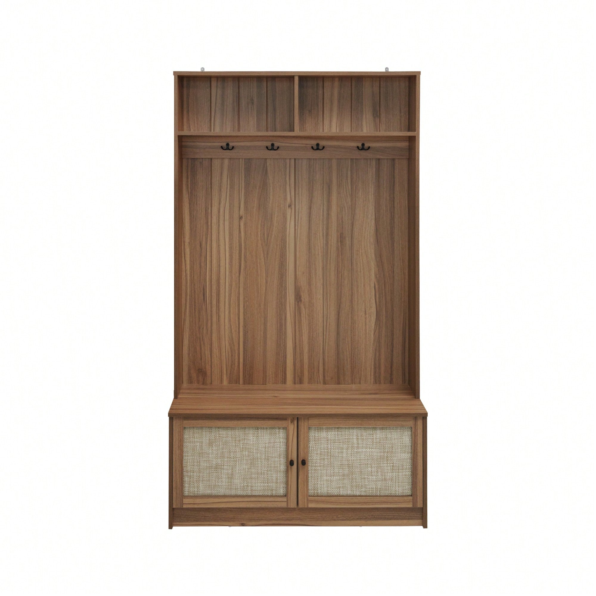 L-Shaped Anti-Dumping Closet With Hooks For Living Room, Entryway, Bedroom - Engineered Rattan Storage Solution With Soft Touch Handle