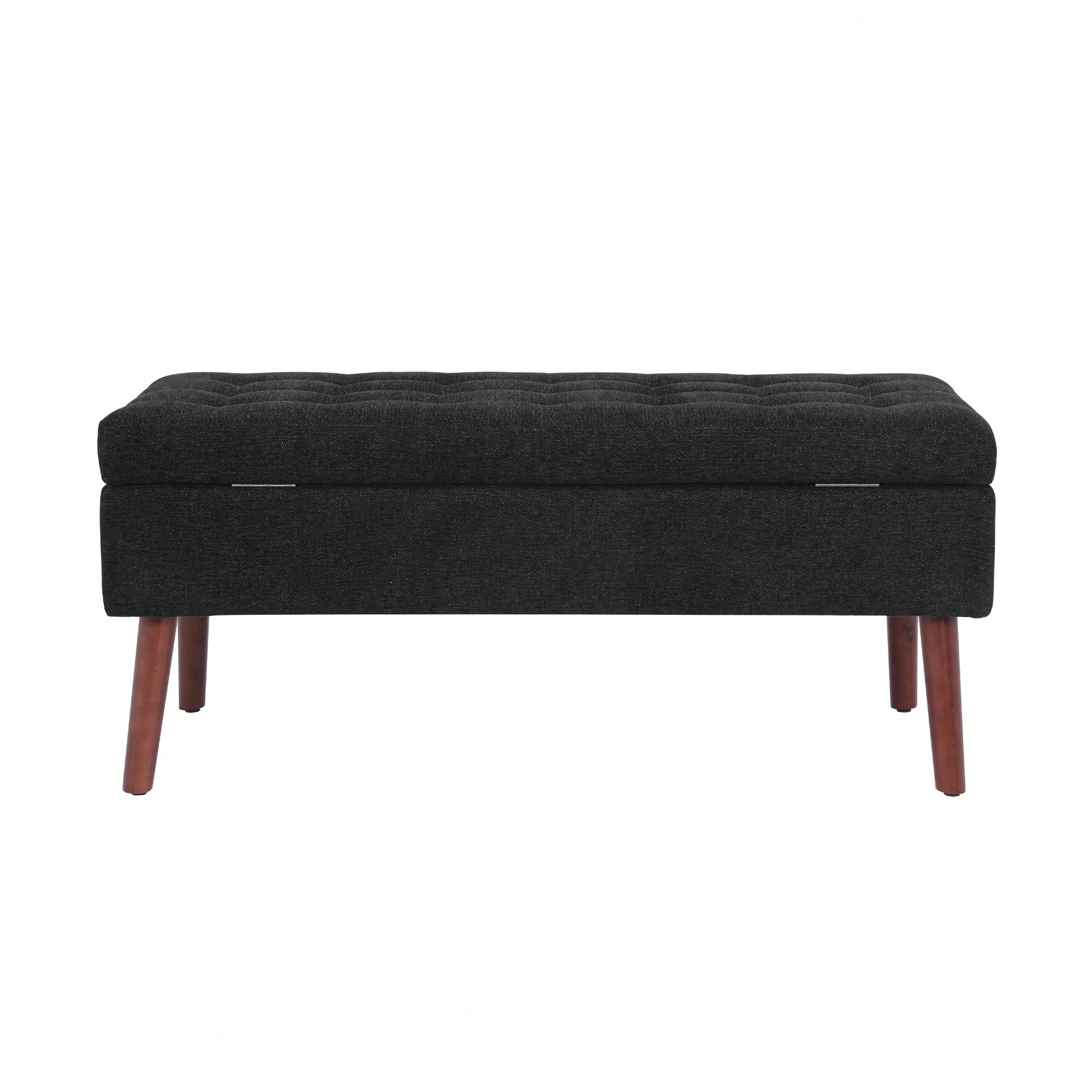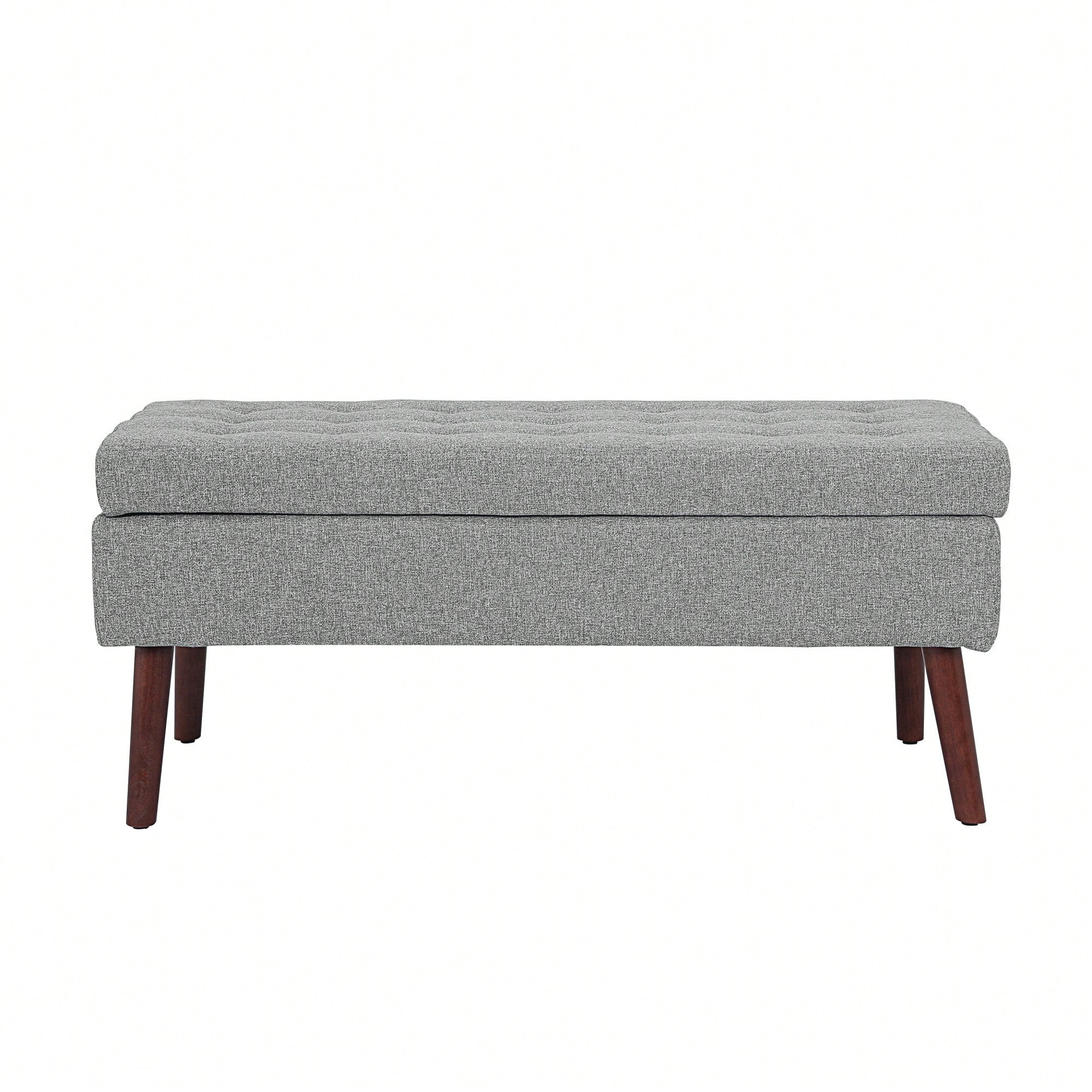 Grey Linen Storage Ottoman Bench For Bedroom Entryway Foot Of Bed With Tufted Design And Safety Hinge 43.7" W X 18.1" D