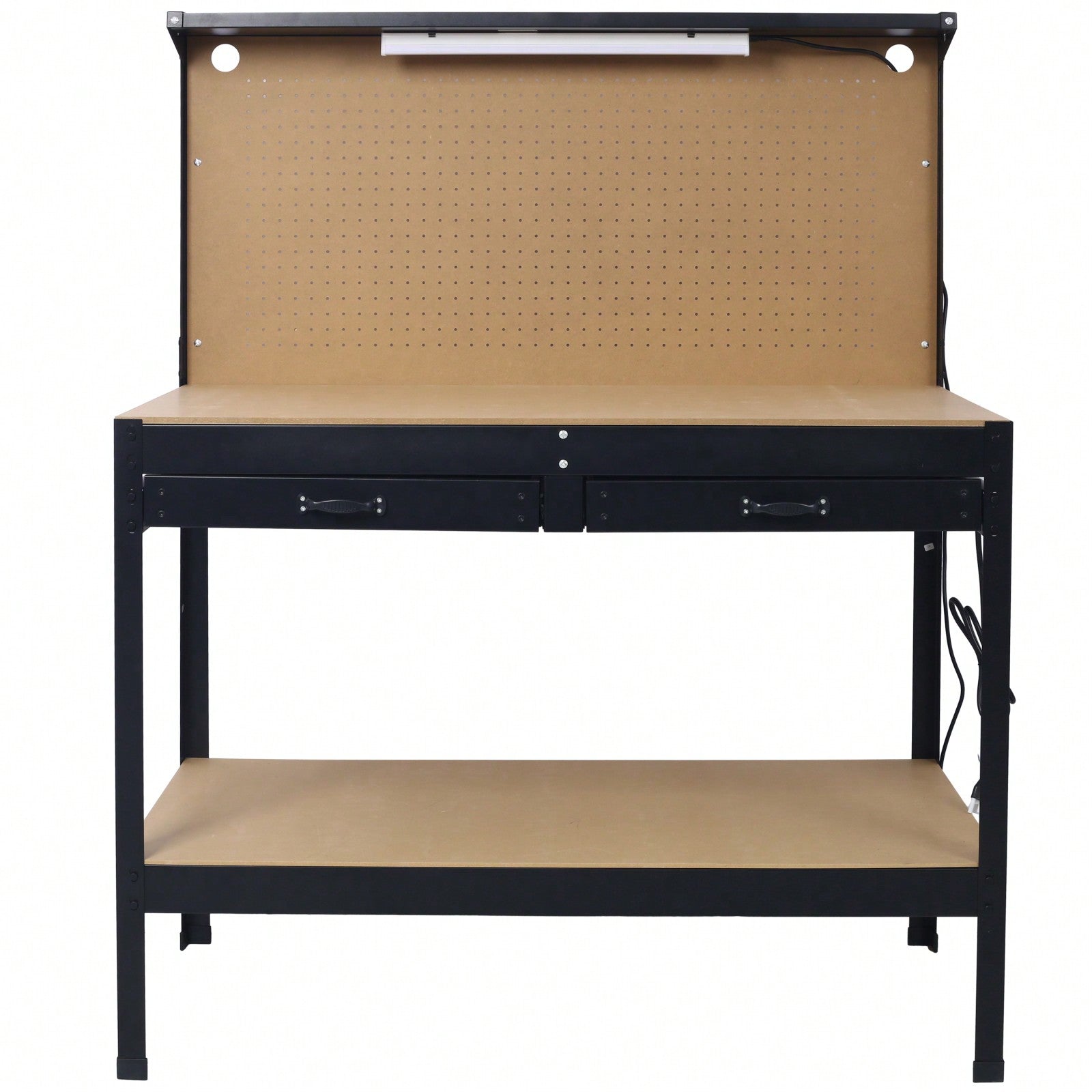 Heavy Duty Steel Workbench with Drawer Pegboard Light 220lb Capacity 4 AC Outlets 2 USB Ports for Garage Workshop Basement