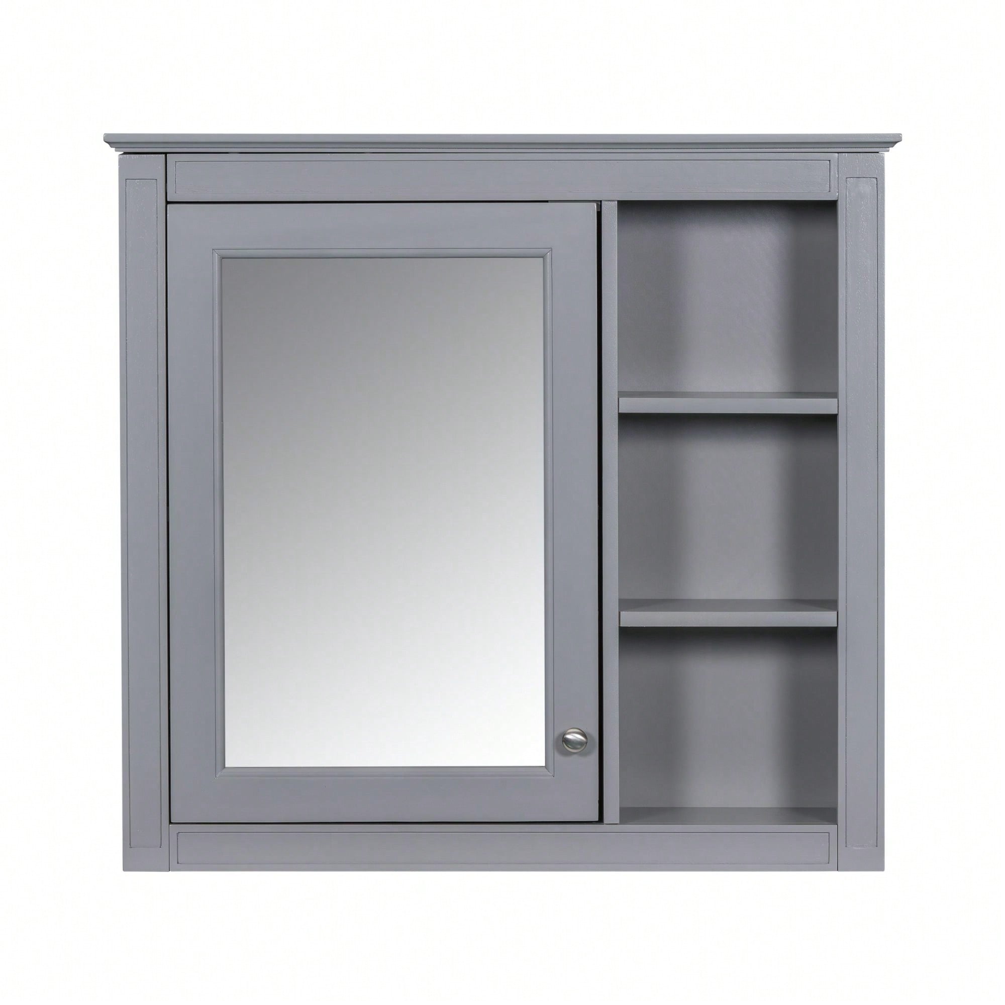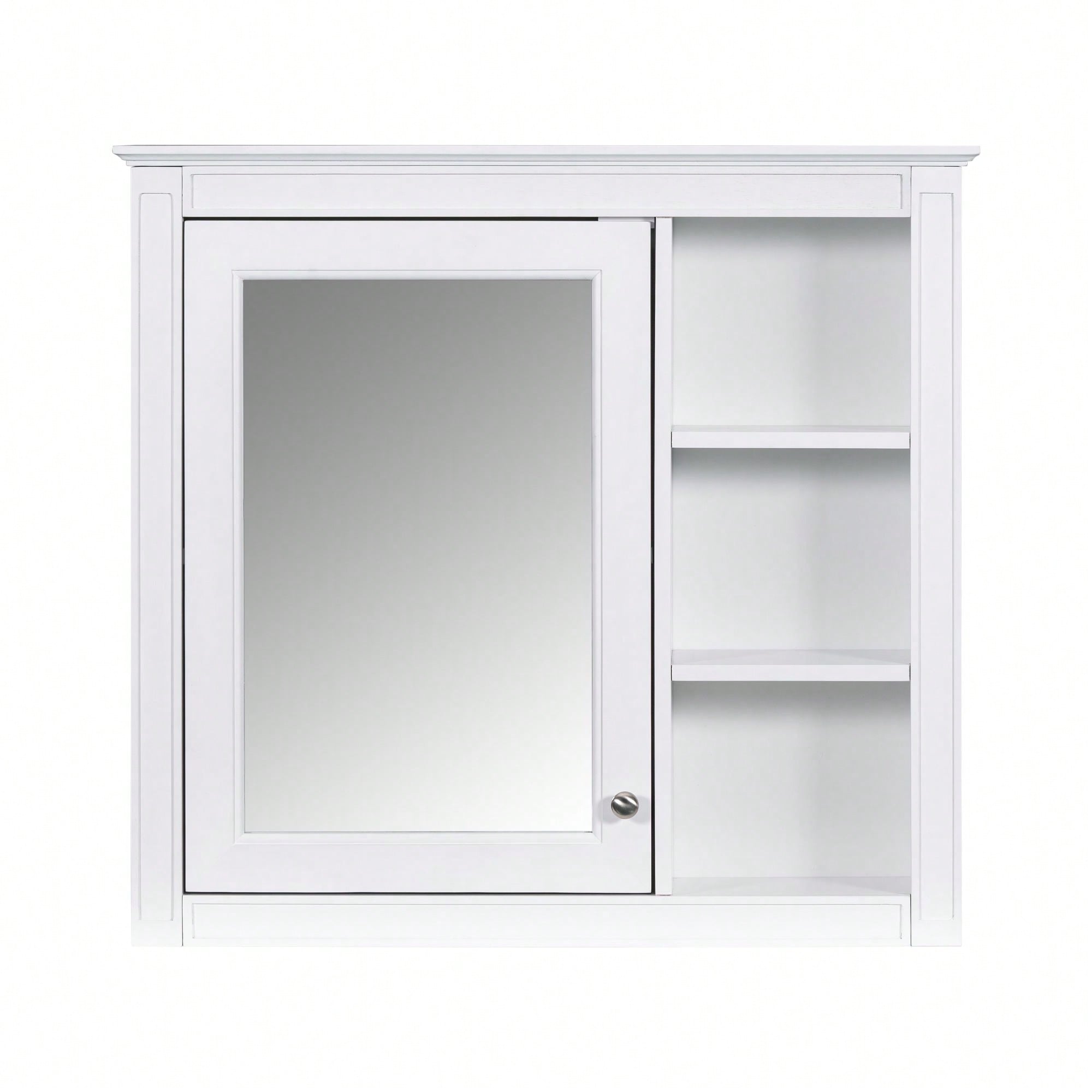 30 Inch Modern Wall Mounted Bathroom Storage Cabinet with Mirror and 3 Open Shelves