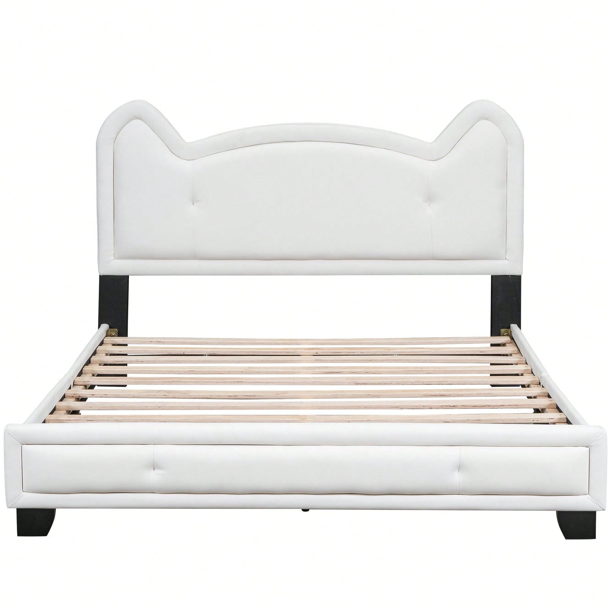 Full Size Upholstered Platform Bed With Cartoon Ears Shaped Headboard
