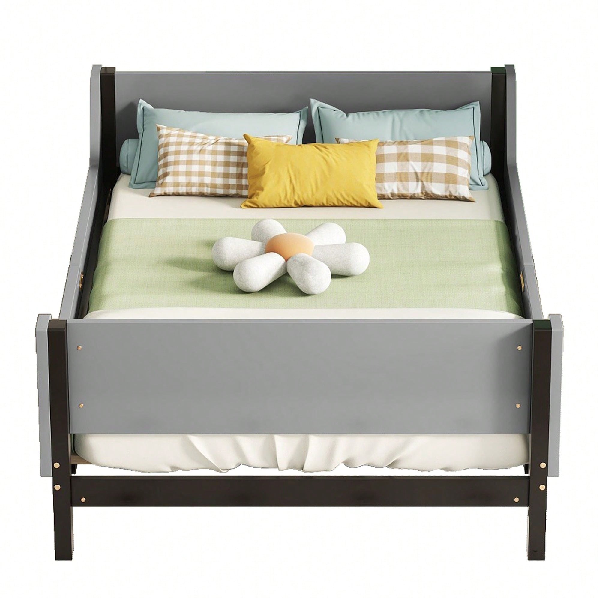 Twin Size House-Shaped Headboard Floor Bed With Handrails ,Slats