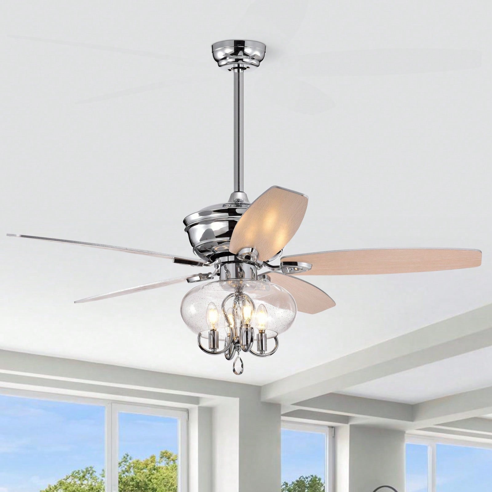 Crystal Chandelier Ceiling Fan with Remote Control Reversible Motor Quiet Operation Dual-Finish Blades for Home Living Room