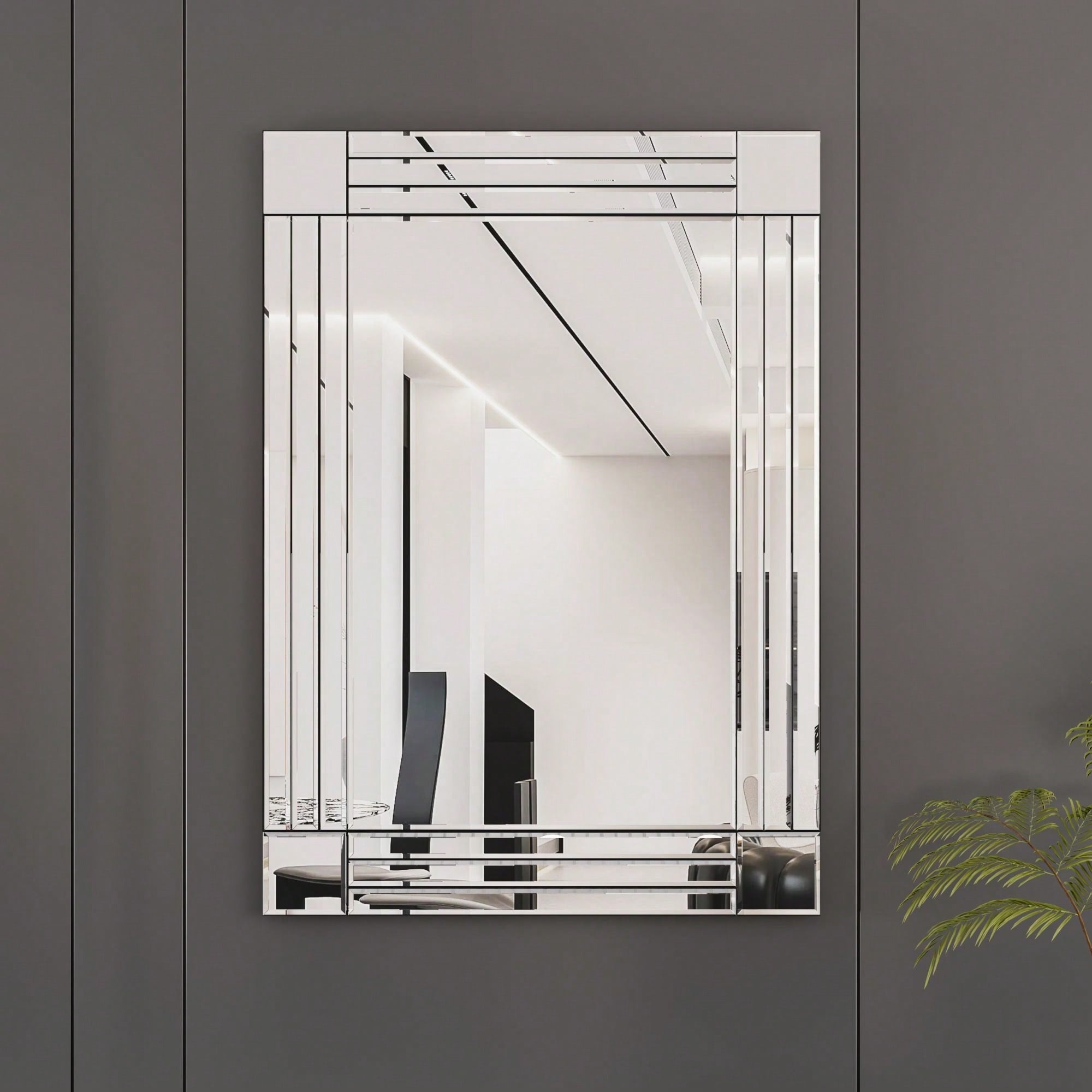 Large Wall-Mounted Silver Decorative Rectangular Wall Mirror For Home, Living Room, Bedroom, Entryway