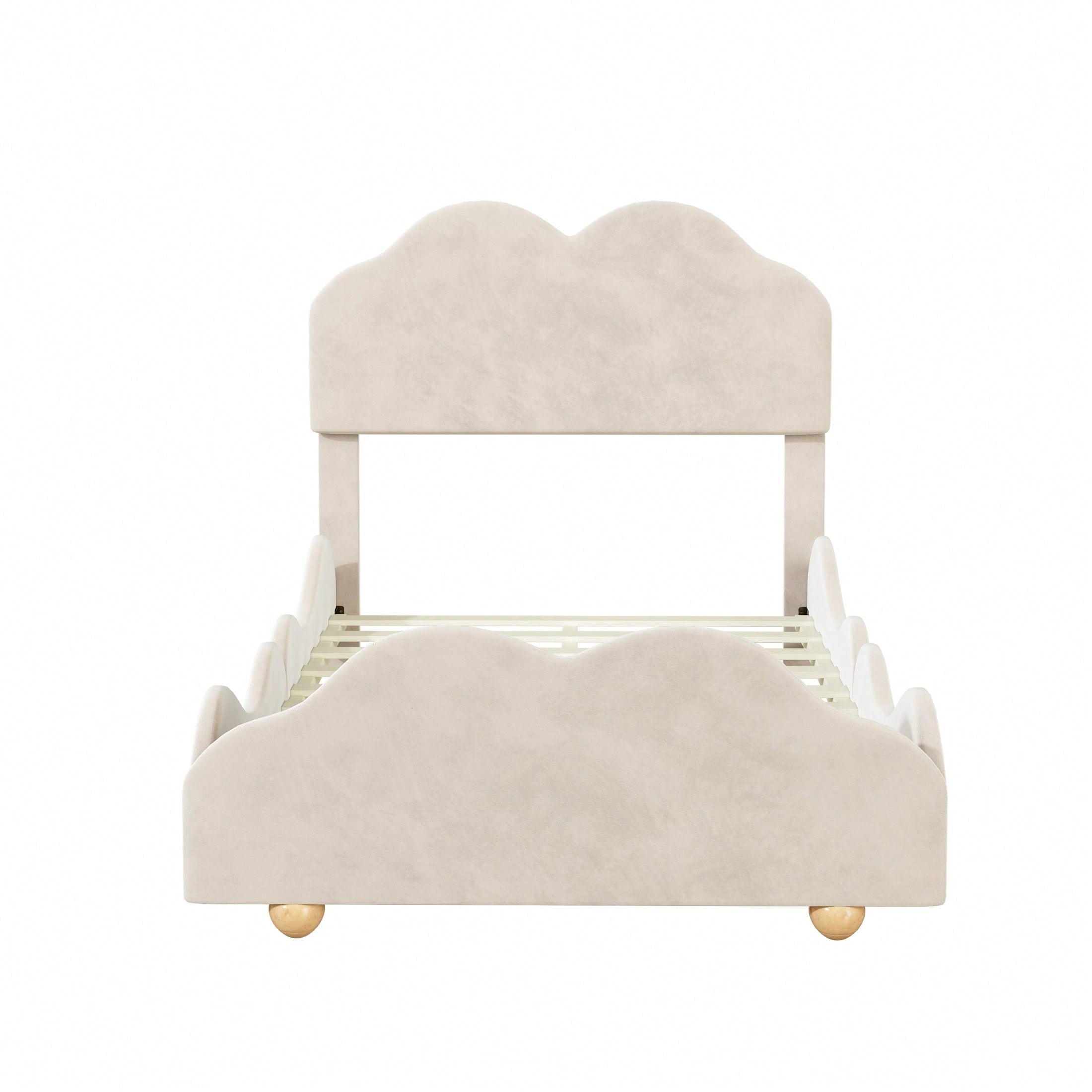 Twin Size Upholstered Platform Bed With Cloud Shaped Bed Board
